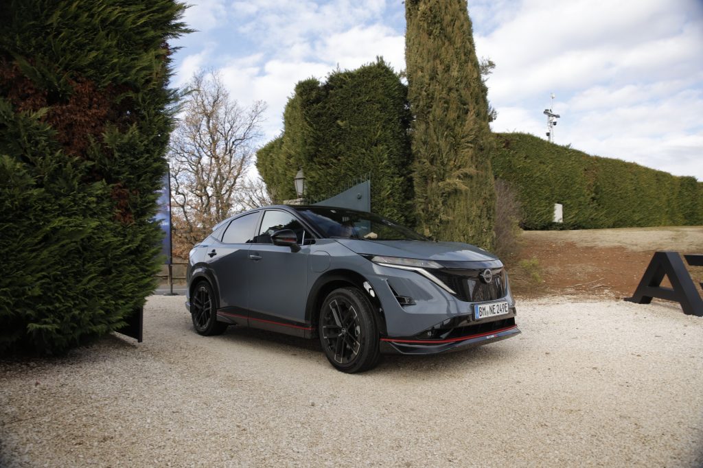 Avec 320 kW (435 ch) et 600 Nm de couple, le Nissan Ariya Nismo abat le 0 à 100 km/h en 5 secondes. Sa plateforme CMF-EV, développée pour l’Alliance Renault-Nissan-Mitsubishi, est ici optimisée avec une répartition du poids favorisant l’arrière (60 %).