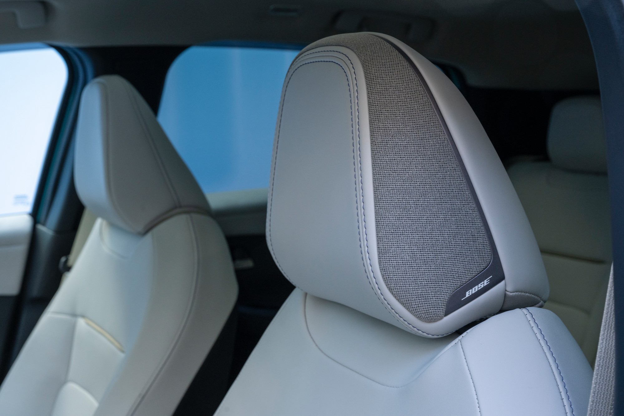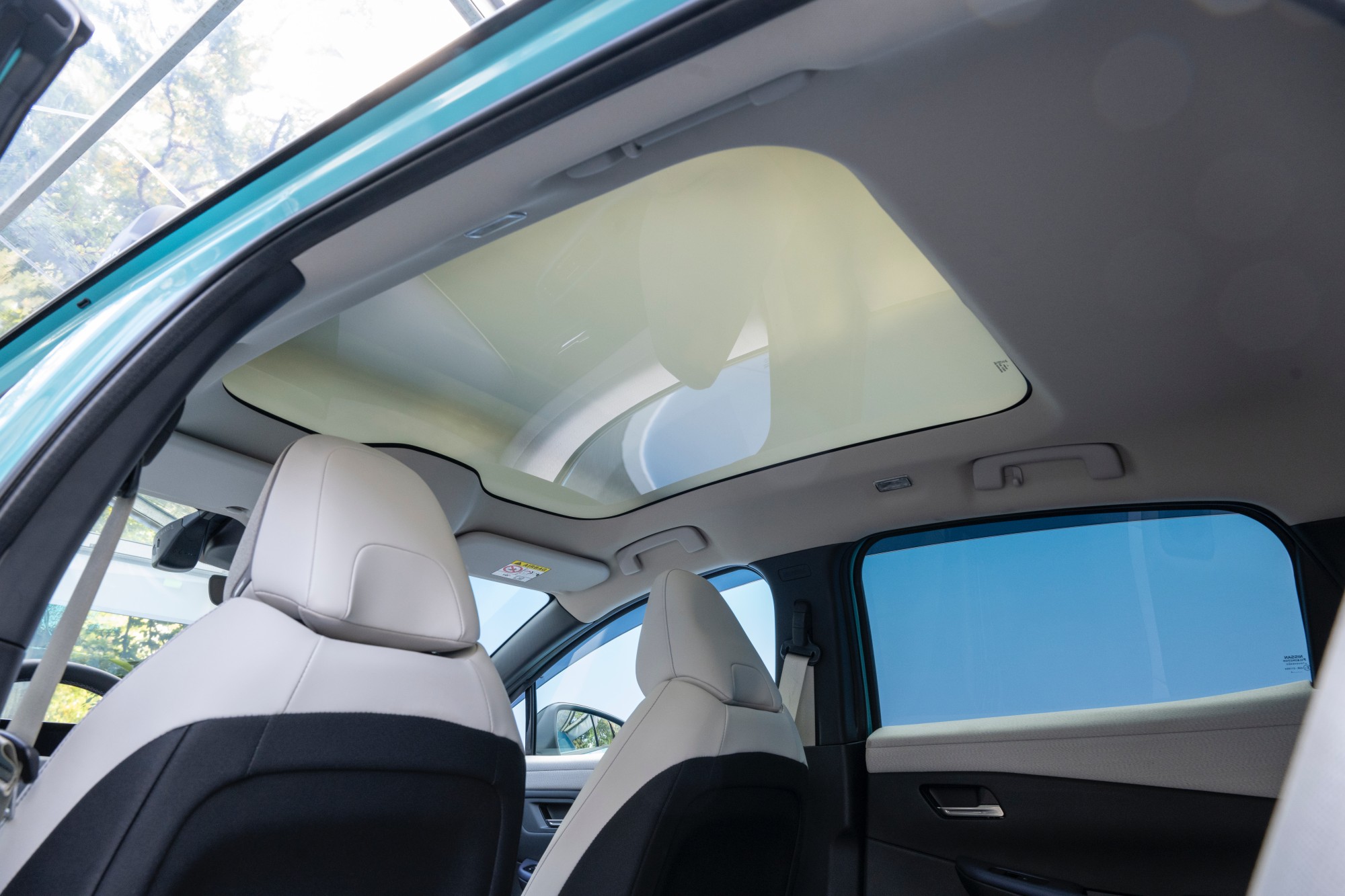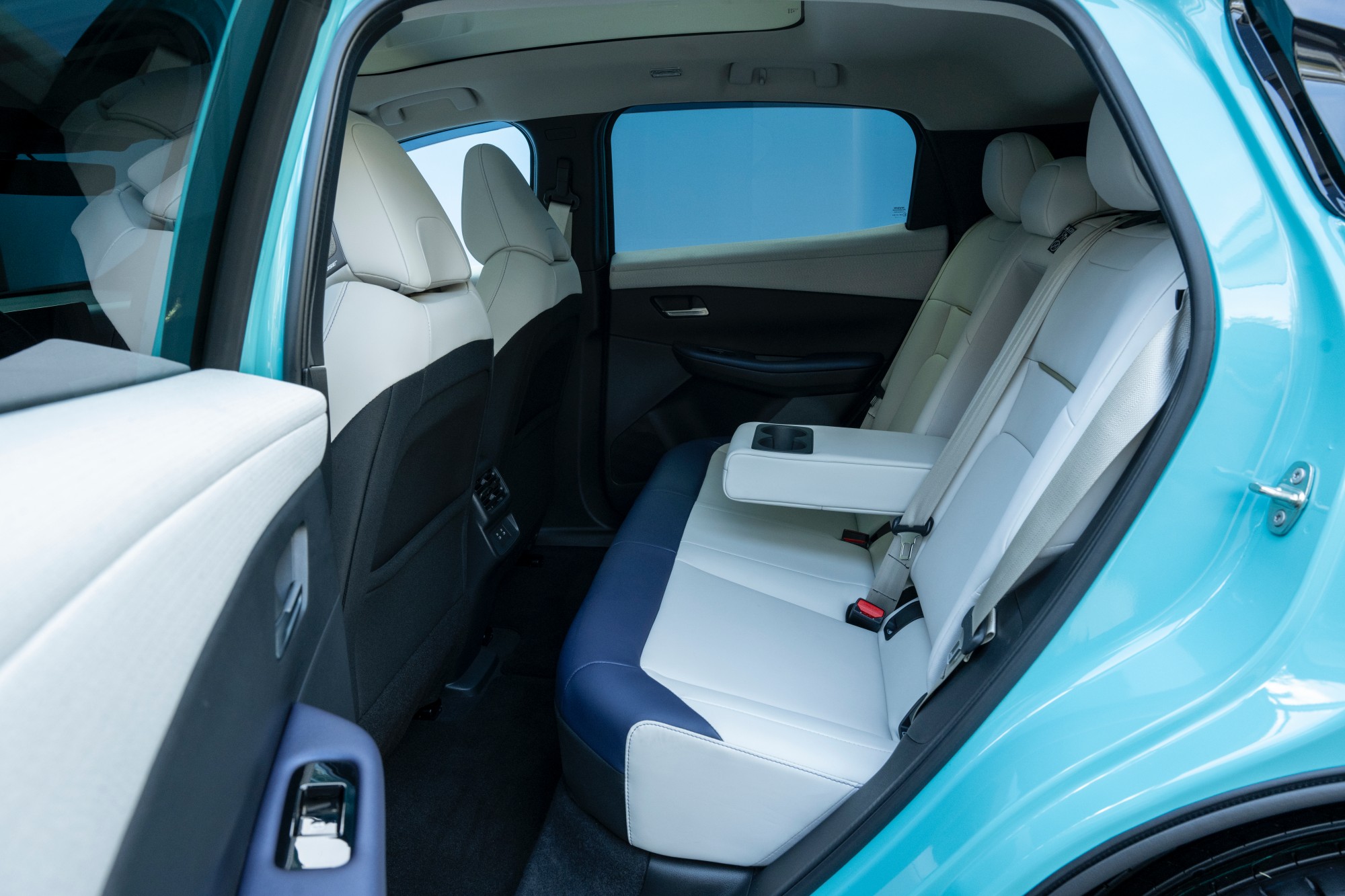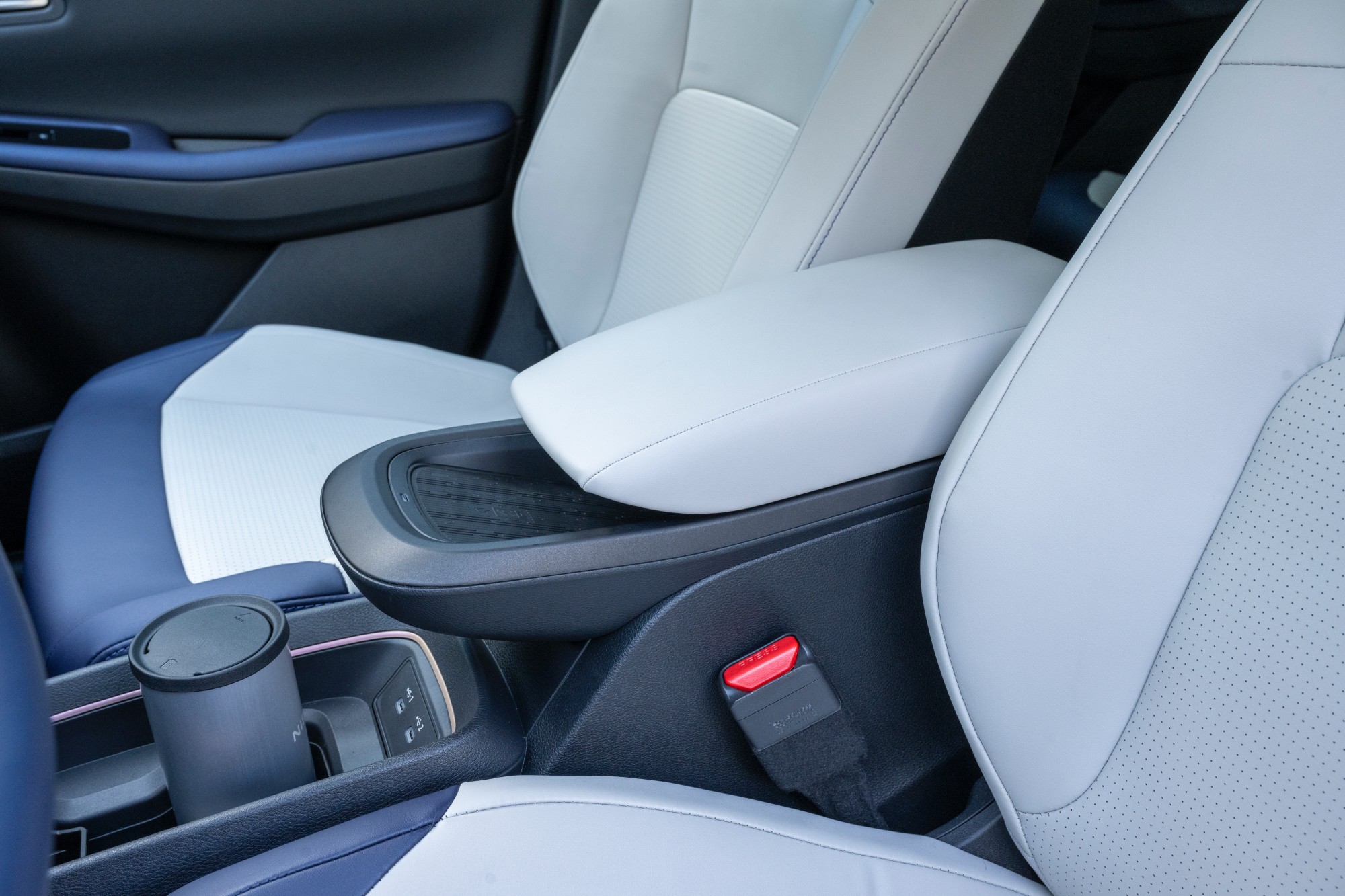 À l’intérieur, l’ambiance marie technologie et luminosité. Le toit panoramique à opacification variable diffuse une belle clarté dans l’habitacle, tout en filtrant la chaleur quand il le faut, grâce à son verre athermique. L’espace reste correct pour quatre occupants, un peu plus compté pour cinq, comme très souvent dans la catégorie. La finition fait un énorme bond en avant par rapport à la précédente LEAF.