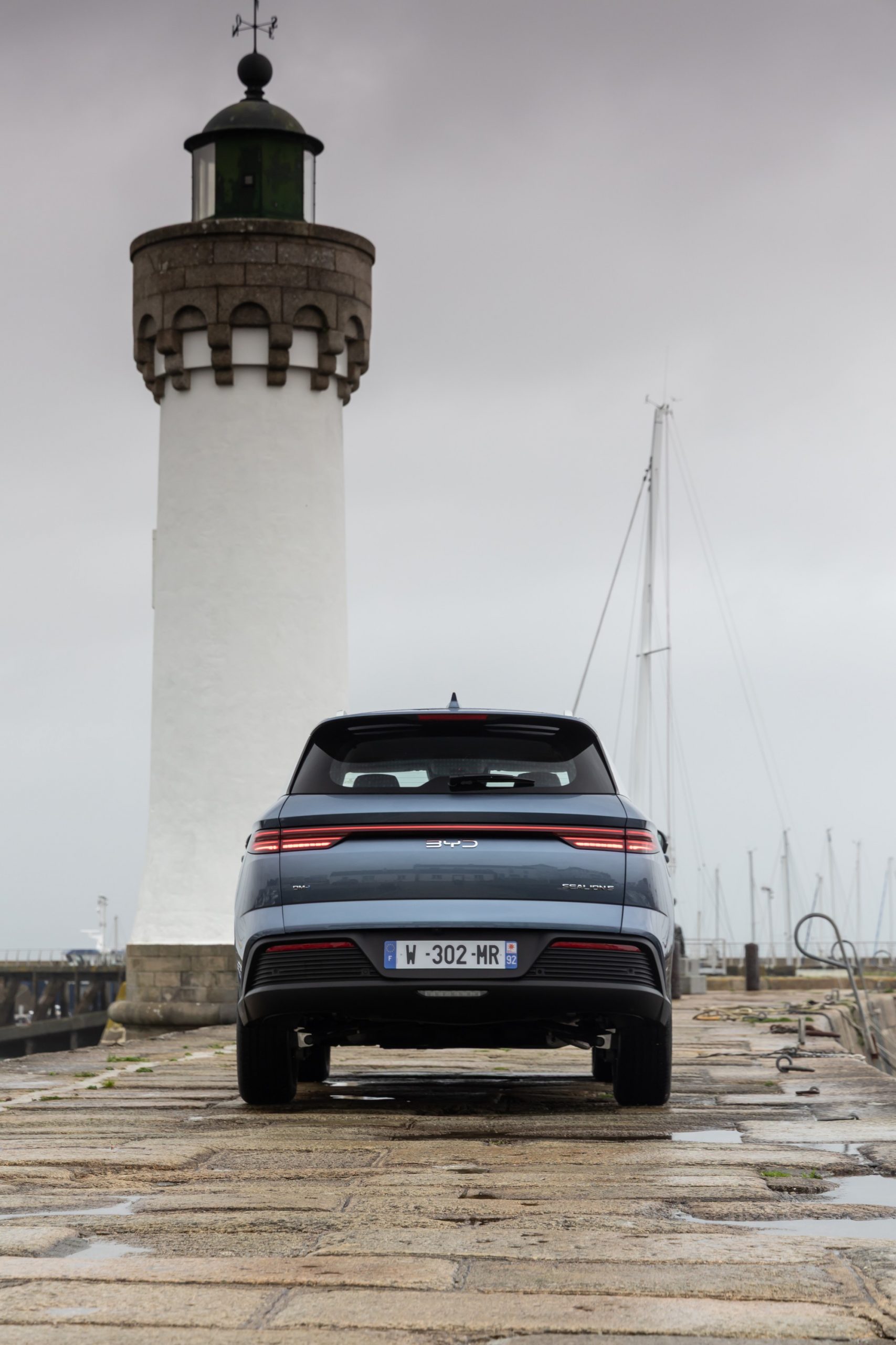 À vrai dire, on devient même gourmand au regard de l’efficacité de la motorisation. On a envie de plus de confort, de plus de plaisir au volant. Pour la première notion citée, il n’y a pas grand-chose à redire, grâce à l’adoption de suspensions plutôt souples, mais pas caricaturales, sans mollesse exagérée. Les mouvements de caisse se montrent ainsi bien contenus, limitant les désagréments pour les estomacs les plus fragiles. Il faut malheureusement aussi composer avec un amortissement un peu trop percutant à basse vitesse. Notre Sealion 5 DM-i sait en fait très bien voyager, notamment dans des conditions météorologiques difficiles en Bretagne, avec pluie et vent.