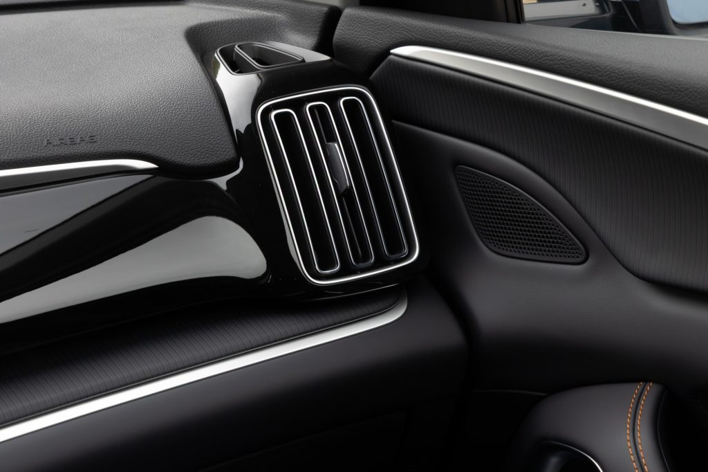 La motorisation hybride se compose d’un 4 cylindres 1.5 à cycle Atkinson de 98 ch, couplé à un bloc électrique de 197 ch alimenté par une batterie de 18,3 kWh. La puissance combinée est annoncée à 212 ch. Les cellules sont rechargeables (3,3 kW) et assurent une autonomie théorique de 88 kilomètres. À l’usage, la voiture privilégie le mode électrique, qu’il faut toutefois forcer sur les 25 % restants pour aller le plus loin possible. Le reste du temps, en mode hybride, notre Sealion 5 garde un quart de la batterie pour optimiser la consommation de carburant. Dans la réalité, son appétit s’avère mesuré, même batterie « vide » (mais donc jamais complètement), avec un chiffre proche des 6 l/100 km sur un parcours routier mêlant autoroute et voies rapides.