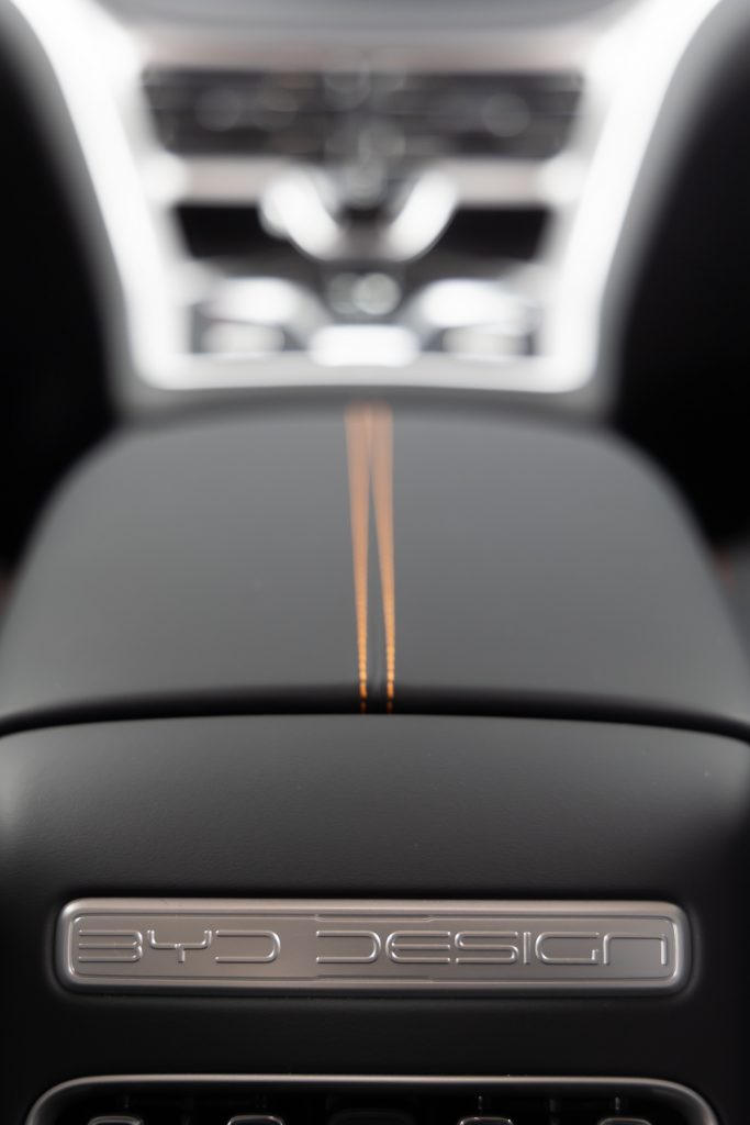 Mais le coup de cœur passant aussi par le design, une fois n’est pas coutume, on ne se trouve pas immédiatement charmé par les lignes du nouveau venu. Pourtant, BYD nous avait agréablement surpris sur certains de ses derniers modèles en matière de design. Le Sealion 5 DM-i n’a pas un physique disgracieux, mais nous l’aurions aimé un peu plus élégant, notamment au niveau de sa face avant. Pour le reste, il reprend les codes assez classiques du SUV familial, avec une signature lumineuse marquée à l’avant comme à l’arrière. La ceinture de caisse est soulignée par un élément façon alu qui remonte sur le montant C. Un becquet au-dessus de la lunette arrière dynamise légèrement la voiture.