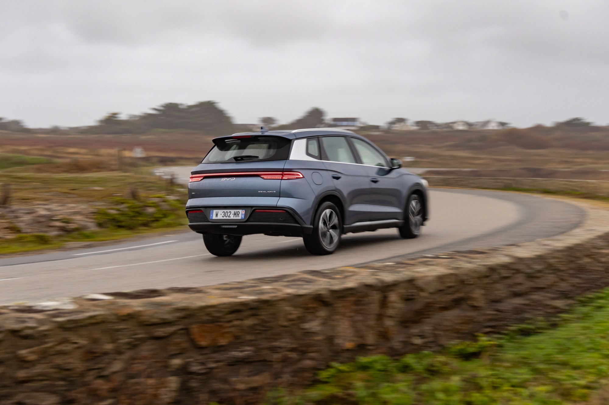 La voiture se montre malgré tout un peu en retrait au chapitre du plaisir de conduite par rapport à ses meilleures concurrentes, à cause d’une direction qui manque cruellement de ressenti. En conduite urbaine, cela n’aura rien de pénalisant, mais sur route, il faut bien admettre qu’on aimerait un meilleur feeling pour mieux sentir où l’on place ses roues. BYD dispose d’une réelle expertise en matière de motorisation hybride, qui lui permet d’offrir une gestion de la pédale de frein plutôt naturelle. Et croyez-nous, il s’agit d’un sujet manifestement complexe pour les constructeurs, qui peinent souvent à offrir une pédale constante, sans variations d’un freinage à l’autre.