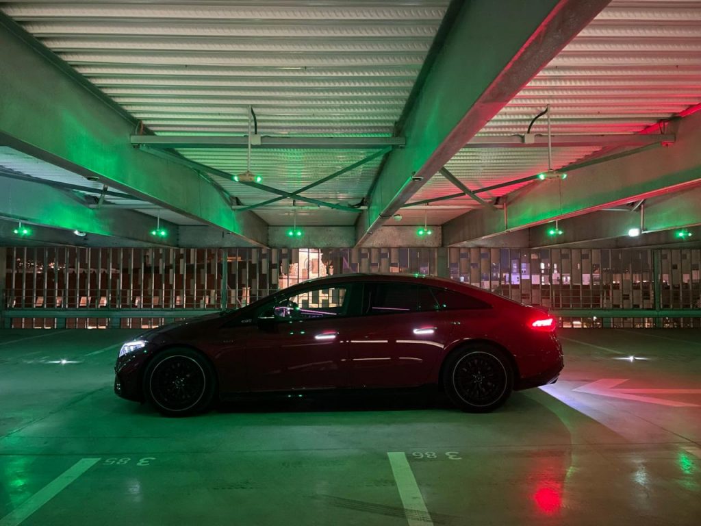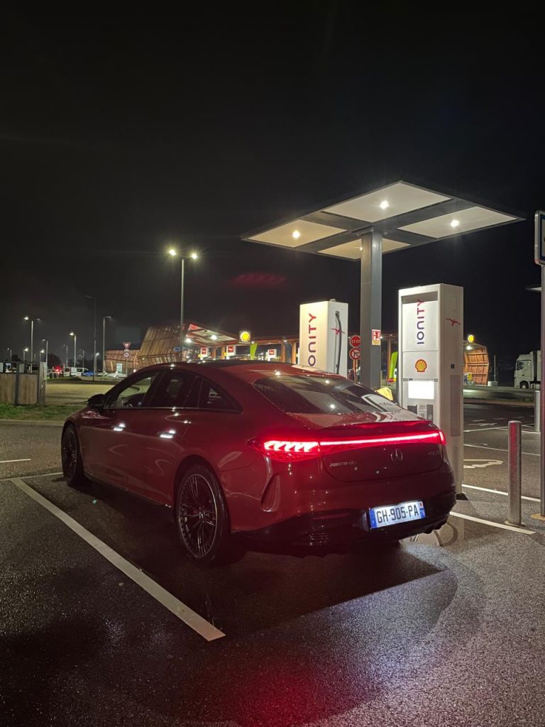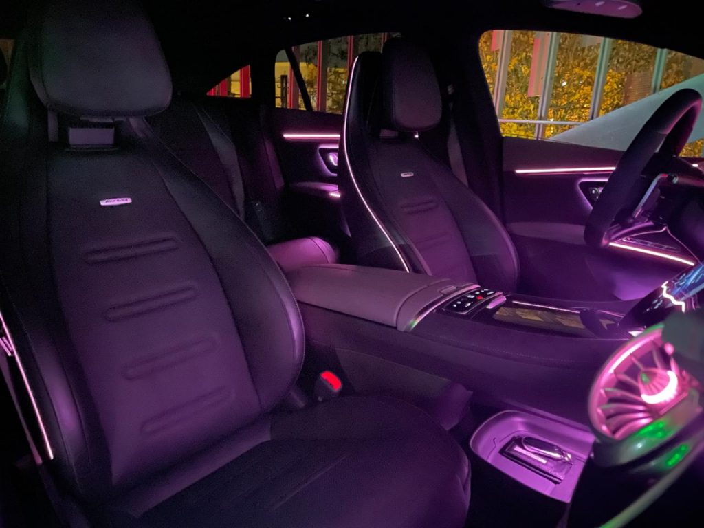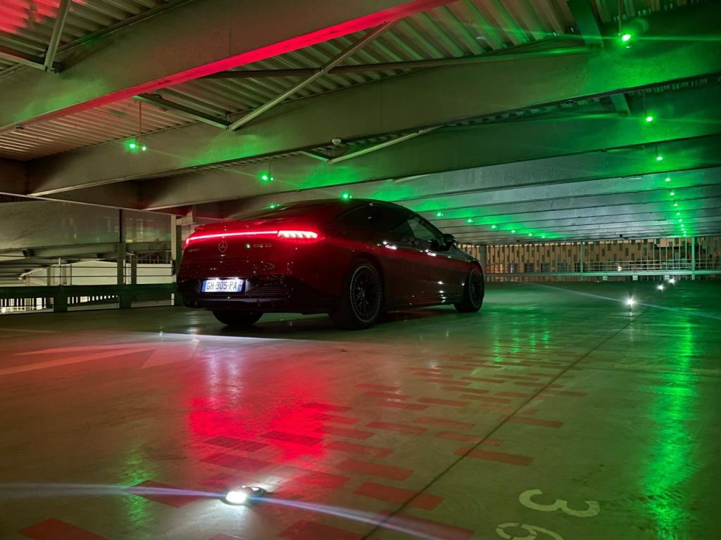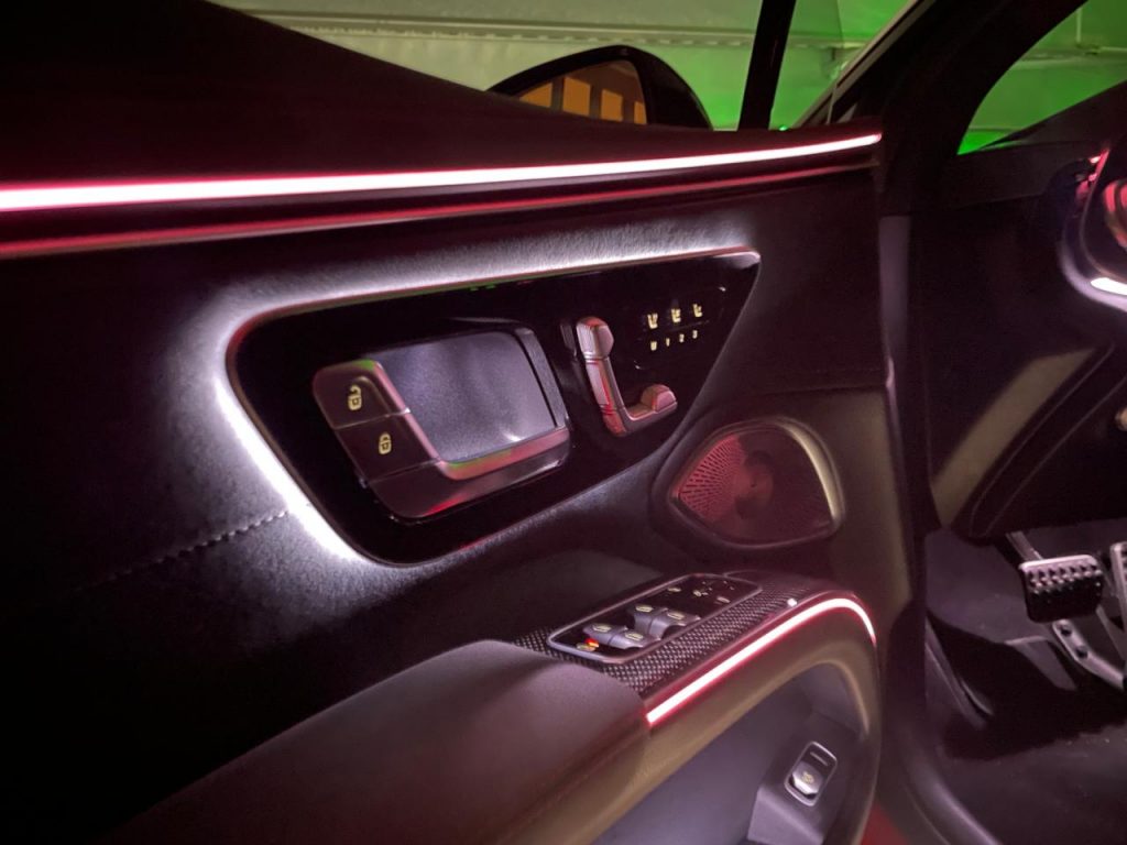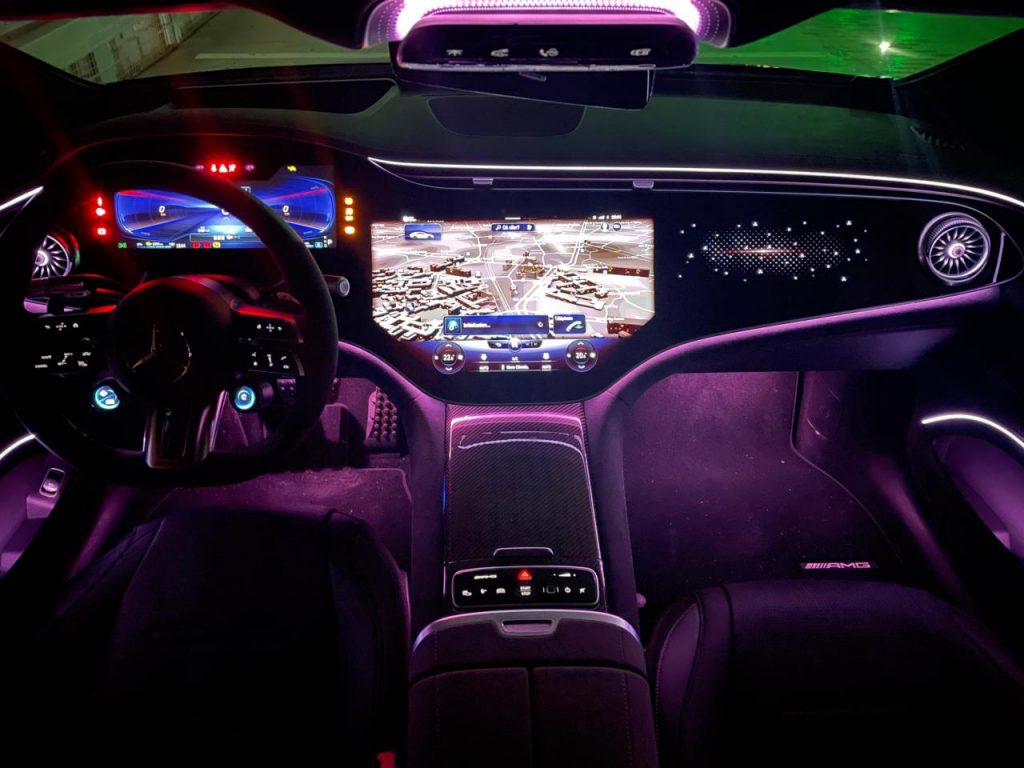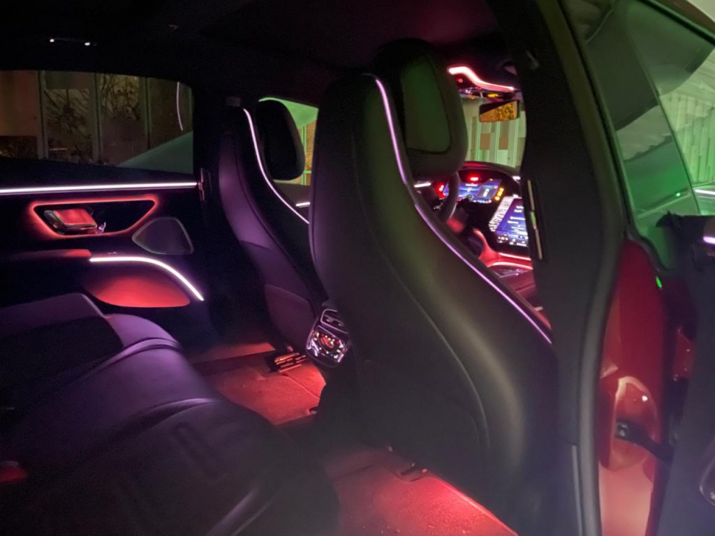 En montant à bord, surtout la nuit, prenez les popcorns et un verre pour apprécier le spectacle. La configuration un poil plus sportive qu’une EQS classique fait son petit effet. Volant AMG avec boutons rotatifs à affichage couleurs, sièges massants, chauffants et ventilés, sono de très grande qualité. On pourrait s’arrêter là, mais nous allons continuer.