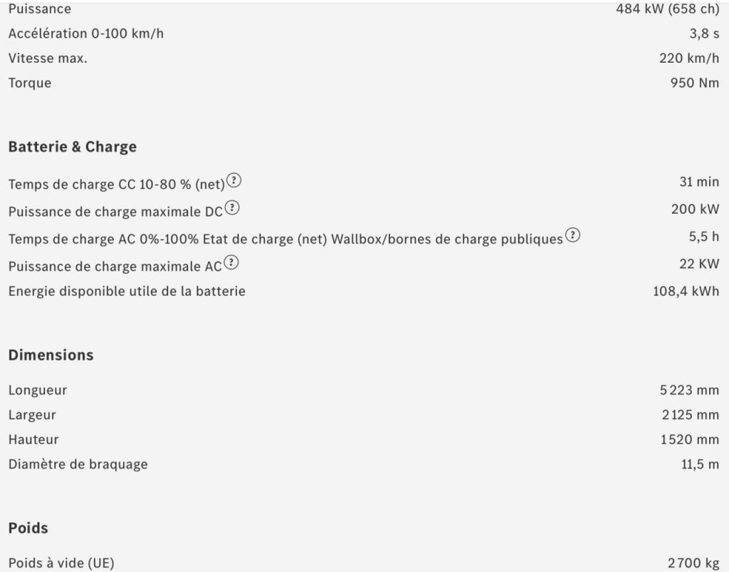 On pourrait rester à l’arrêt comme ça pendant des heures à s’amuser avec tous les équipements, mais ce serait passer à côté de l’intérêt surprenant de cette voiture derrière le volant. 658 chevaux, 950 Nm de couple, 4 roues motrices et directrices, n’en jetez plus! 3,8 s pour atteindre les 100 km/h, sans violence… on le regretterait presque. L’alimentation vient d’une batterie de 107,8 kWh, pas très loin du record de capacité.
