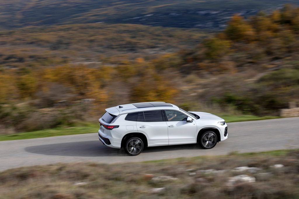 Cette plateforme MQB Evo assure aussi une tenue de route de bon aloi. Clairement, le Tayron préfère la conduite d’un papa raisonnable qui préserve les estomacs des membres de sa famille à bord. Avec ses vitrages feuilletés acoustiques et les sièges massants à l’avant pour détendre aussi la maman qui mérite de se reposer jusqu’à destination, une conduite dynamique n’a que peu d’intérêt. On passe donc du bon temps dans ce Tayron si on ne le prend pas pour ce qu’il n’est pas.
