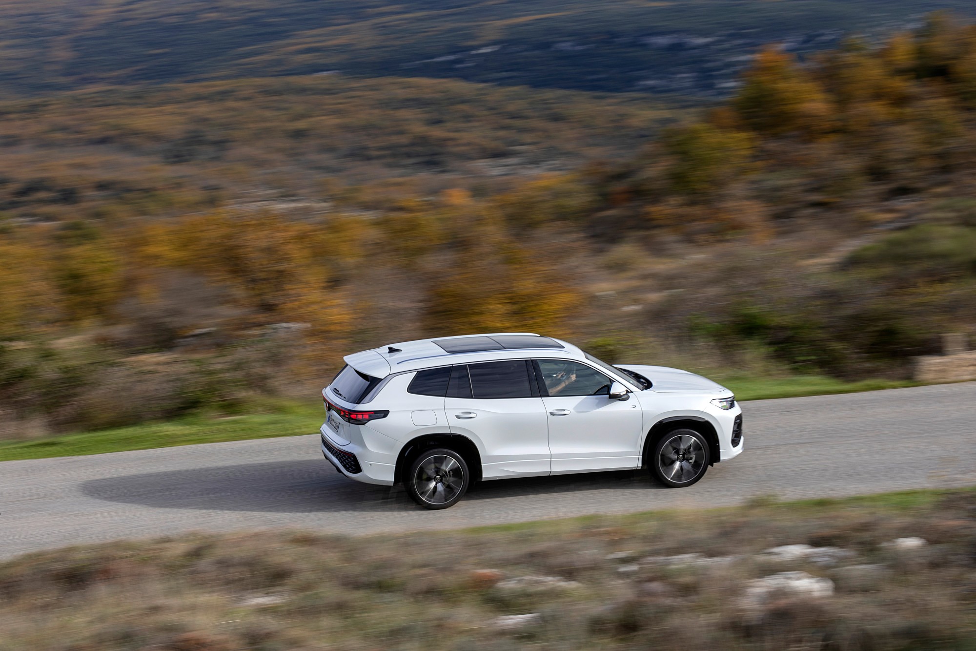 Avec une telle longueur, le Tayron avait intérêt à mettre tous ses occupants à l’aise à l’intérieur. Son grand empattement donne en effet de la place dans toutes les cotes. On ne manque pas d’espace pour les jambes ; on n’en attendait pas moins. Dommage pour les 6e et 7e places manquantes sur notre modèle d’essai. Mais il se rattrape avec une soute immense de 705 litres (850 l sur les versions non rechargeables).