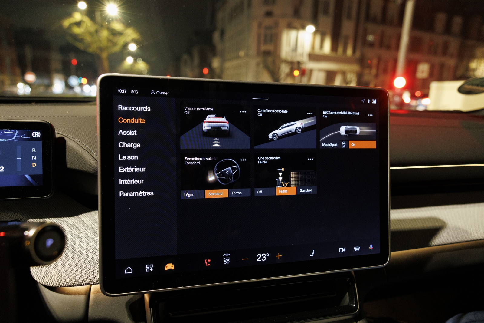 Justement, petite subtilité de langage chez Polestar : le One Pedal s’active par définition quand la « vitesse extra lente » (ou rampage, selon le terme technique associé) ne l’est pas. Le réglage de régénération étant alors situé dans le mal-nommé « One pedal drive », qui déclenche alors une vraie roue libre lorsqu’il est désactivé. Avec ces deux réglages, l’auto peut donc filer en souplesse, ou aller jusqu’à l’arrêt complet en One Pedal, certes en manquant parfois de douceur. Une polyvalence électrique très idéale.