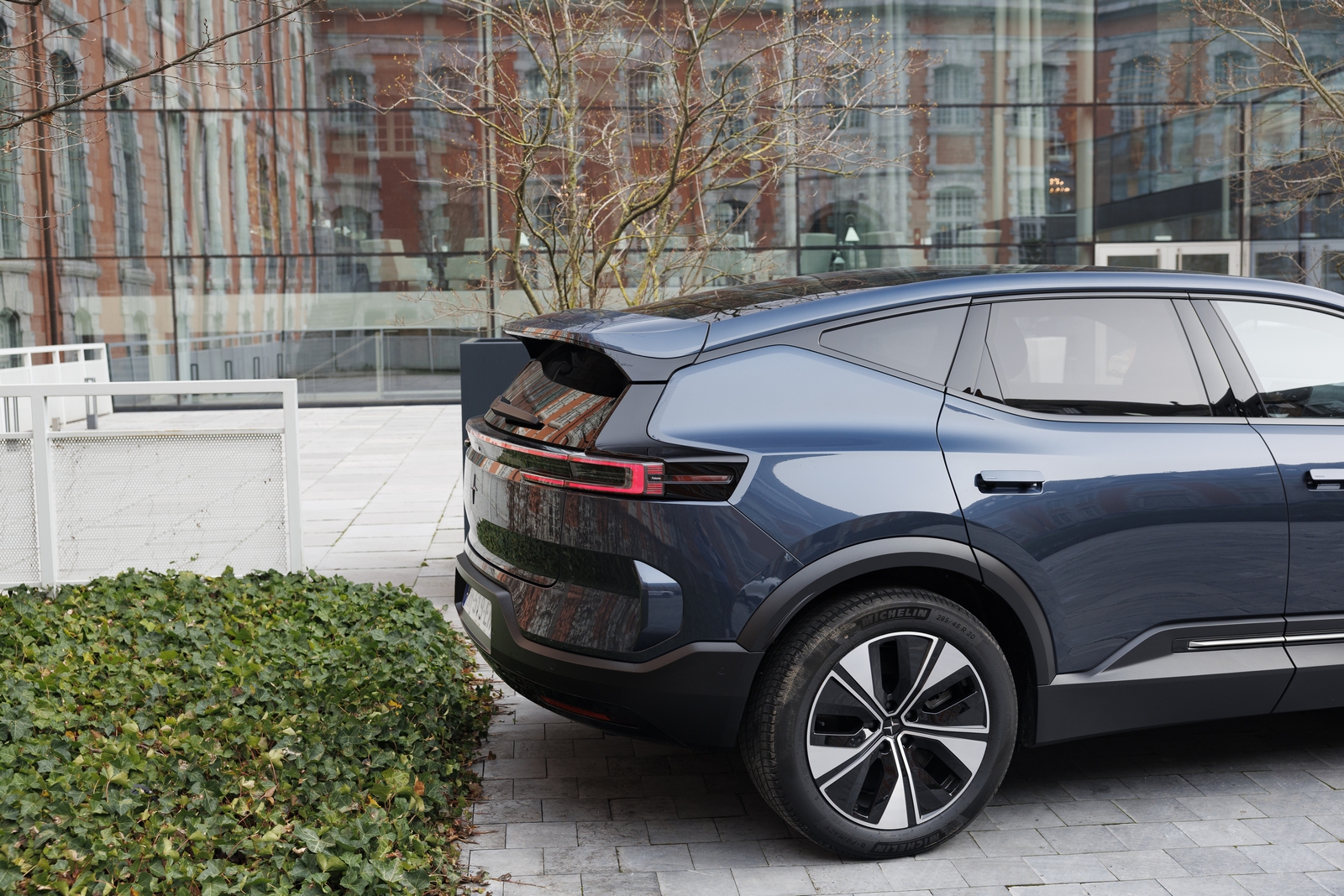 Jour 2 donc, et nous récupérons notre nouveau vaisseau amiral : le Polestar 3. A l’image de la veille, nous avons une version d’accès, toujours propulsion et désormais 299 ch électriques et une grosse batterie de 111 kWh. Les jantes de 20′ font presque petites ici, quand l’auto peut disposer jusqu’à 22′.