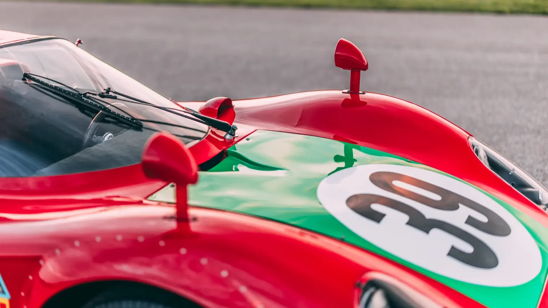 Le véhicule proposé aujourd’hui à la vente fait partie des 28 exemplaires seulement produits. Il ne s’agit pas d’un simple modèle de course, mais bien du châssis 017, véritable pièce unique ayant marqué l’histoire de l’endurance. Au fil de sa carrière, il a été piloté par les figures majeures du volant Alfa Romeo, remportant les plus grandes épreuves de sa catégorie lors de la saison d’or de 1968. Ce n’est pas une réplique ni une reconstruction : c’est l’original, avec une histoire documentée, conservée et respectée.