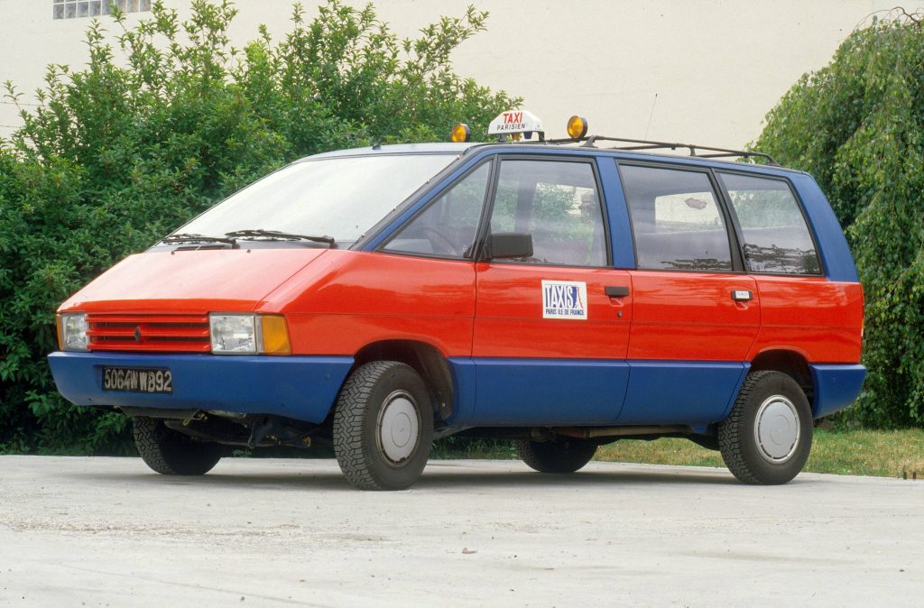 En 1985, Renault et Matra ont lancé un Espace aux couleurs des taxis parisiens G7. Cet Espace qui se distinguait par sa couleur bleue et rouge disposait d’un aménagement spécifique et pouvait embarquer un téléphone et une télévision pour les clients ! La production de ces taxis, pouvant fonctionner au GPL, serait d’une vingtaine d’unités. A noter que les bagages se chargeaient à l’avant, à côté du conducteur !