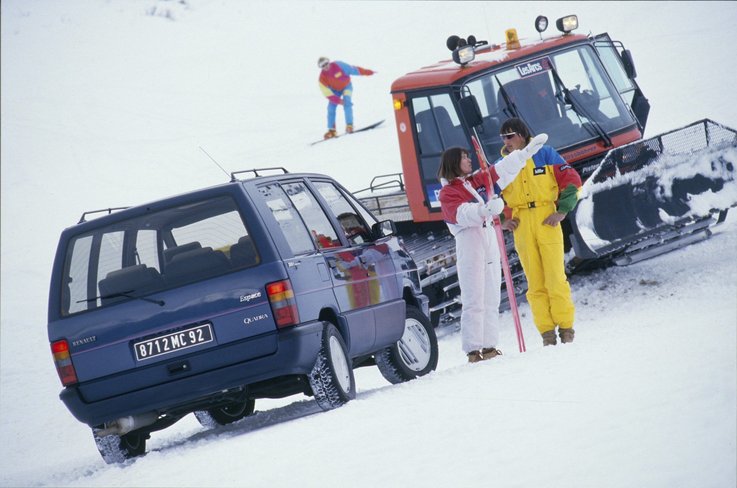 La remise à niveau du Renault Espace a également été technique. Le moteur Douvrin de 110ch a cédé sa place à une version dégonflée à 103 ch pour la 2000 GTS. La TXE et la 2000-1 injection profitaient quant à elles, d’une version boostée à 120 ch de ce bon vieux 1995cm3. Sur le plan dynamique, l’Espace a également remplacé son train avant de Renault Fuego par des éléments provenant de la « 25 ». Mais la surprise du Chef a été sans aucun doute le lancement d’une version à transmission intégrale baptisée Quadra ! Seul le 2,0 injection de 120 ch pouvait animer cette version.