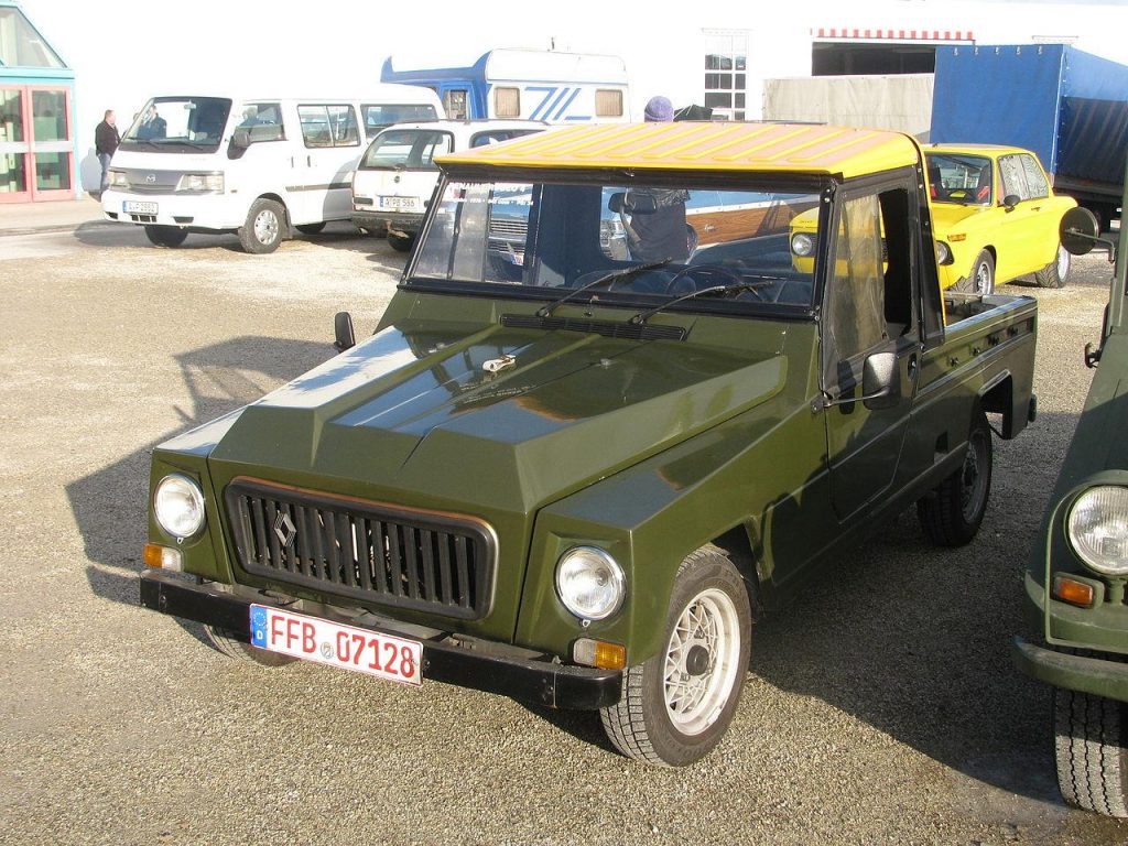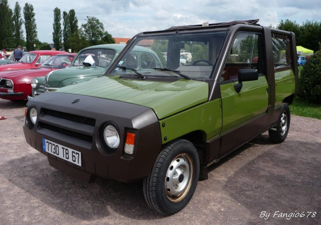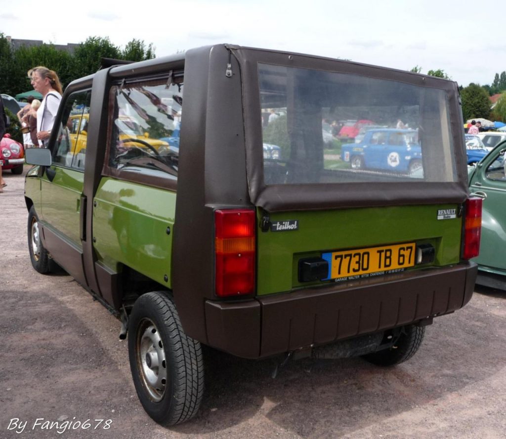 La Renault Rodeo est présentée en 1970 et va très vite évoluer. En fait, les premiers modèles sont siglés ACL Rodeo. Ce sont les plus rares, avant que Renault n’y mette son losange. En 1972, elle devient Rodeo 6 sur base de R6. Là encore, Teihlol intègre des éléments de grande série et s’adapte aux évolutions de cette série justement. C’est pour cela que trouver deux Rodeo parfaitement identiques relève de la gageure. Certaines ont des pare-chocs en plastique, d’autres en métal, certaines ont des feux arrières de R4, d’autres d’Estafette. C’est un peu le monstre de Frankenstein. Ci-après une Rodeo 6 d’après 1979 avec son avant reconnaissable.