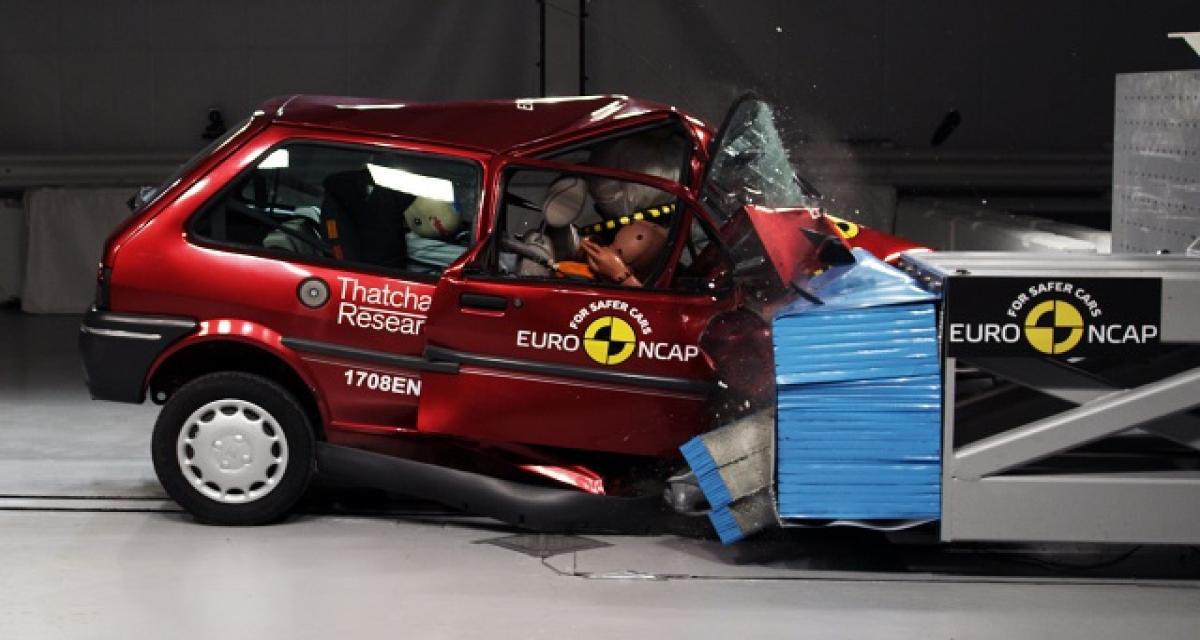 Deux crash-tests, dits commémoratifs, ont été effectués au Thatcham Research Center au Royaume-Uni. La pauvre Rover 100 d’il y a 20 ans n’avait pas l’ombre d’une chance. Mais, c’est assez parlant de voire la voiture se plier comme une canette de métal. A ses débuts, l’EuroNCAP notait avec des étoiles séparées et seulement deux tests, protection des adultes et test piétons. Plusieurs voitures alors commercialisées y étaient passées.