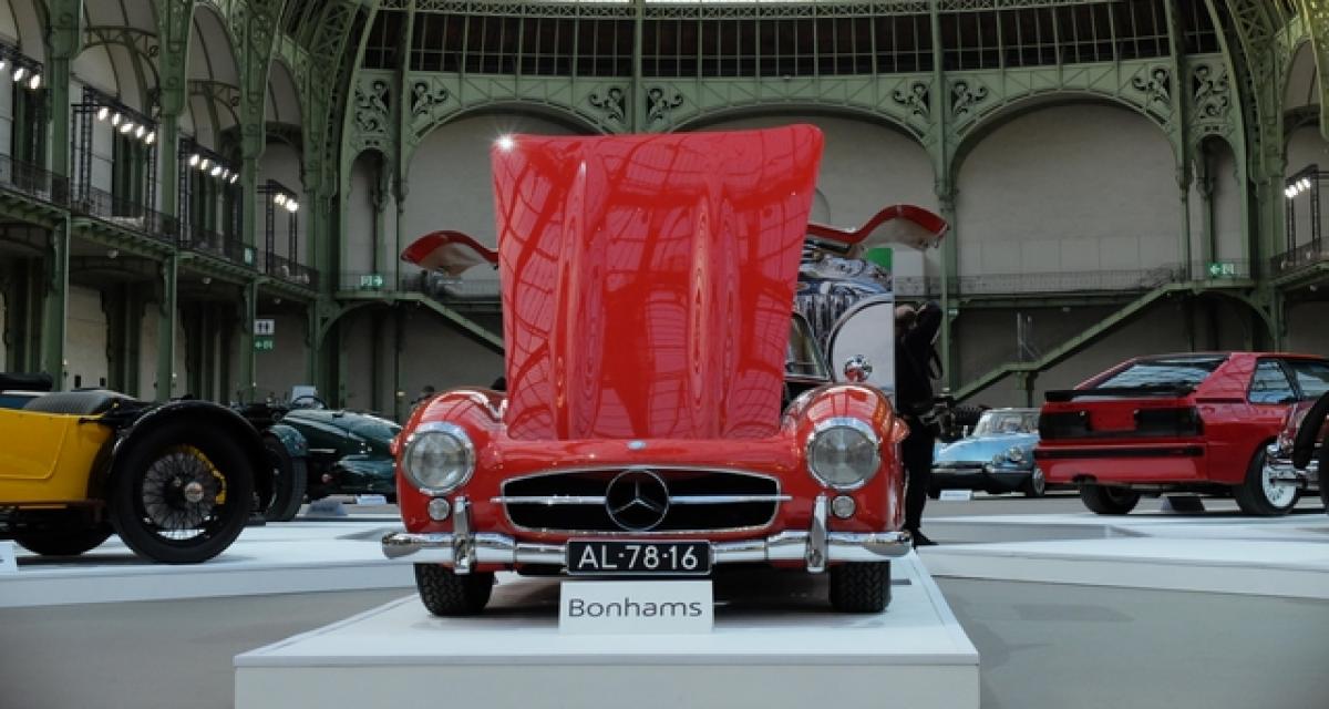 On se plait à rêver d’un Retromobile au Grand Palais…un jour peut-être. Les 77000m² de l’édifice sont à même de contenir un salon qui atteint aujourd’hui 65000m². Mais c’est Bonhams qui a la primeur de ce lieu mythique. Habitué de la semaine parisienne, la maison y a ses habitudes. Cette année, c’est une Aston Martin Ulster de 1935 qui tient le haut de l’affiche. Une voiture qui a couru au Mans. Elle partage la vedette avec une Mercedes-Benz 300 SL à portes papillon. Non par sa rareté, mais par son tarif qui est un baromètre de la santé du marché des anciennes.