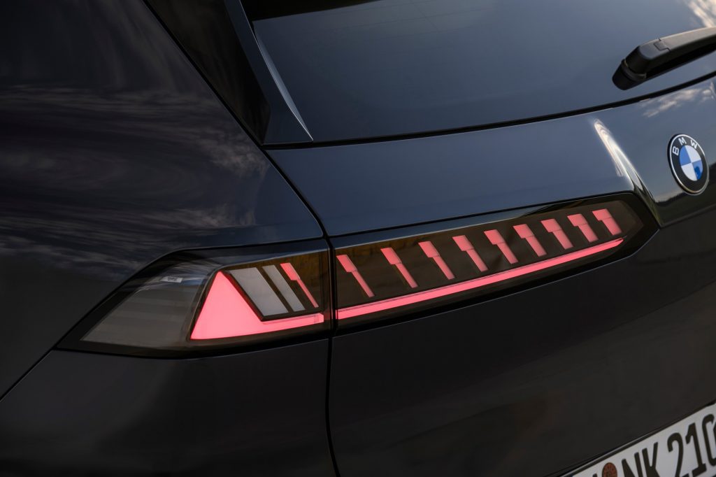 Pour ceux qui se poseraient la question, l’iX3 actuel n’est pas juste la version électrique du X3, ce dernier reposant sur la plateforme CLAR. Et quand vous le regardez, on comprend immédiatement que les deux véhicules sont très différents, à commencer par le style. Il affiche le nouveau visage de la marque, avec des haricots beaucoup plus modestes, mais toutefois directement reliés aux feux, avec une signature lumineuse qui s’anime d’ailleurs de façon assez spectaculaire quand on s’approche de la voiture. Plus que jamais, on croit faire face à un concept-car roulant.