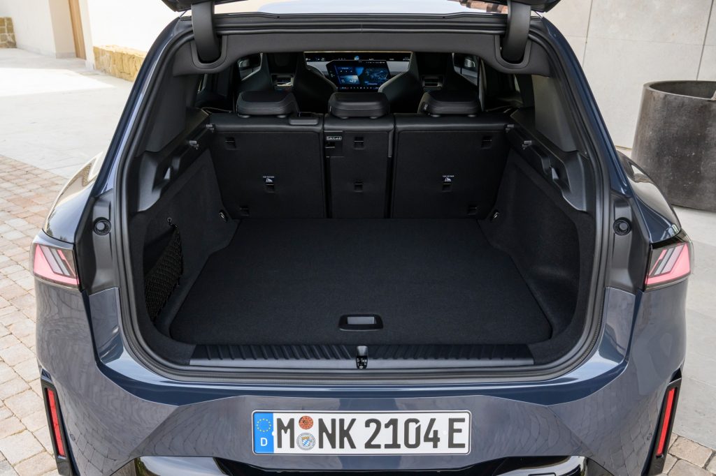 Son profil résolument moderne fait de lui un SUV plutôt fluide, nécessaire pour soigner l’aérodynamisme qui prend une place prépondérante dans la recherche d’une autonomie maximale. Ce iX3 s’étend sur 4,78 m. L’arrière imposant donne un air de masque de robot, qui inscrit clairement la voiture dans le futur. Avec des feux aussi élargis, on s’attendait à minima à des clignotants défilants, mais étrangement, ils ne s’activent qu’aux extrémités, ce qui les rend presque peu visibles en journée. Notre finition M Sport va avec notamment un bouclier arrière plus sportif intégrant un diffuseur.