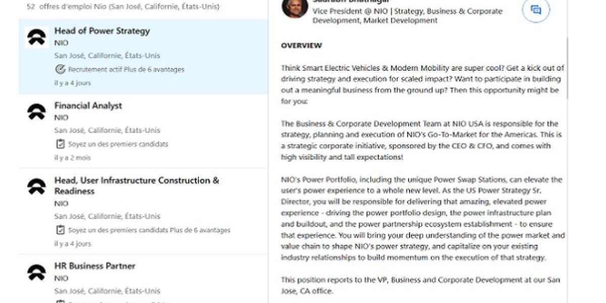 NIO :recherche d’emplois aux US, pôle technologique en vue?