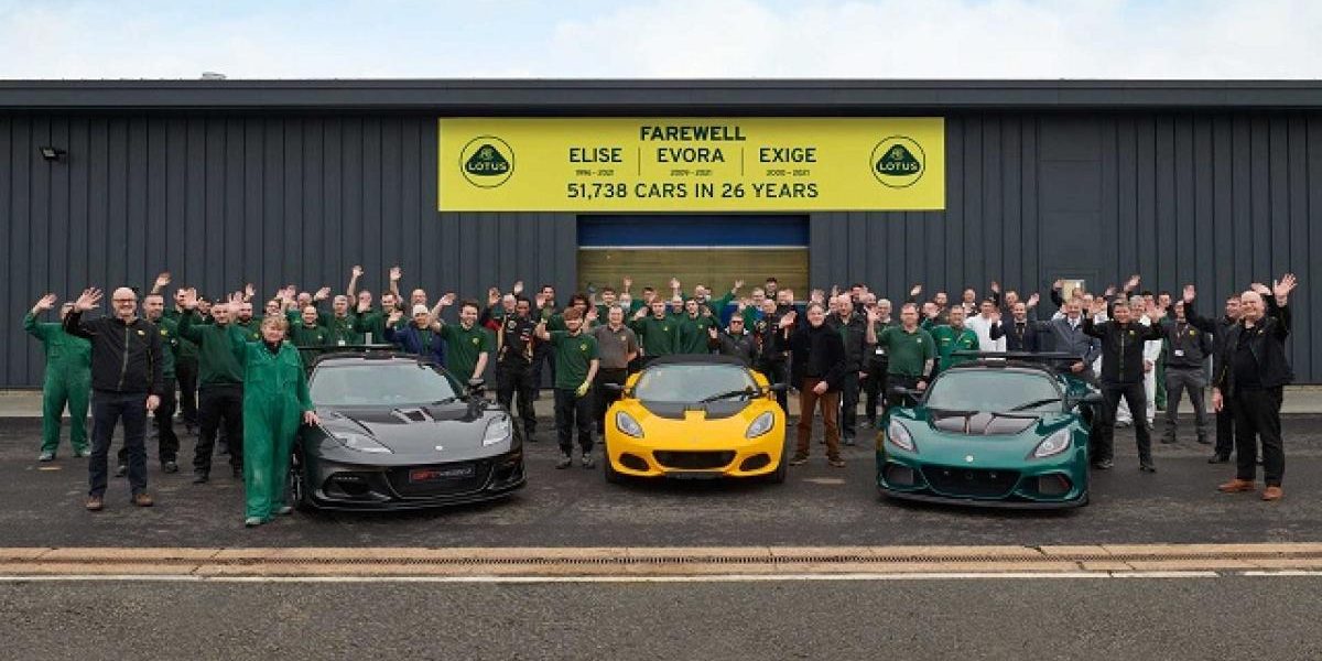 Une page se tourne définitivement à Hethel. Quelques jours seulement après le décès d’Hazel Chapman, l’épouse de Colin Chapman et cofondatrice de Lotus, la production des Lotus Exige, Elise et Evora a pris fin. Le trio a été photographié sur place avec de nombreux membres de l’équipe Lotus qui ont contribué à la conception, à l’ingénierie, à l’assemblage et à la vente des voitures.