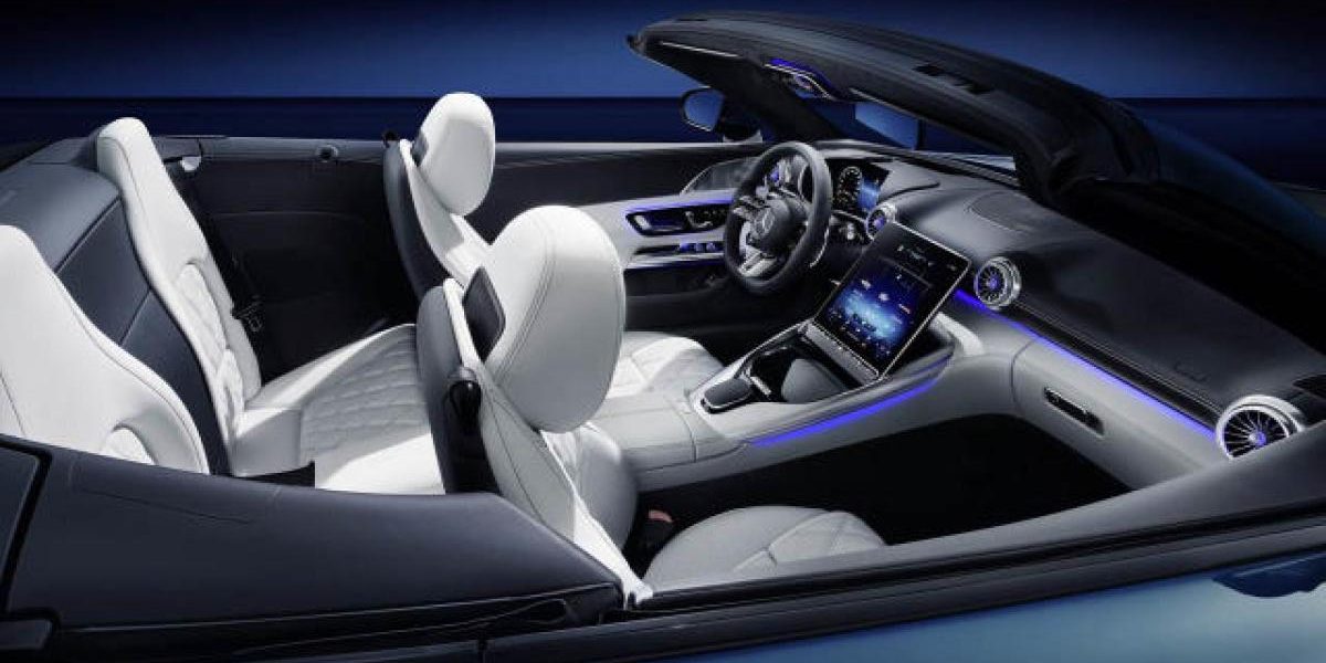 Mercedes dévoile des photos de l’intérieur du prochain Mercedes-AMG SL. Mercedes estime qu’il « transpose la tradition iconique du premier roadster 300 SL à l’ère moderne ».