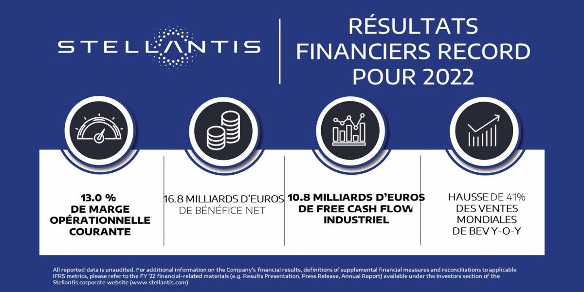 Stellantis annonce ce 22 février 2023 des résultats financiers records pour l’année 2022 avec des hausses à faire pâlir les concurrents. Le bénéfice grimpe par exemple de plus de 25% !