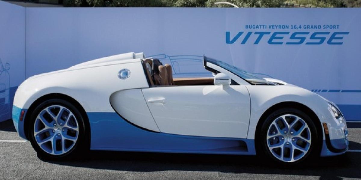 Les séries spéciales, enfin ici modèles uniques, de la Bugatti Veyron décapsulée s’enchaînent. Si lors du dernier salon de Pékin, chez Bugatti on avait levé le voile sur la Bugatti Veyron Grand Sport Vitesse Wei Long, aux USA et à Monterey on découvre la Grand Sport Vitesse Special Edition. Particularité première de la belle alsacienne : sa livrée de carrosserie évoquant une célèbre Type 37A de 1928, un modèle ayant survécu aux affres du temps et qui aujourd’hui fait le bonheur d’un certain Jay Leno. Revue de (menus) détails sur cette Bugatti Veyron Grand Sport Vitesse Special Edition.Reprenant la mécanique, l’horlogerie, classique à savoir le W16 de 1 200 ch pour 1 500 Nm, cette Bugatti Veyron Grand Sport Vitesse Special Edition se démarque via de subtiles spécificités cosmétiques. On note évidemment le mariage entre la livrée de carrosserie ton Bianco et le bleu lumière présent sur les bas de caisse par exemple. Ce même bleu habille aussi les jantes particulières dans cette finition.
