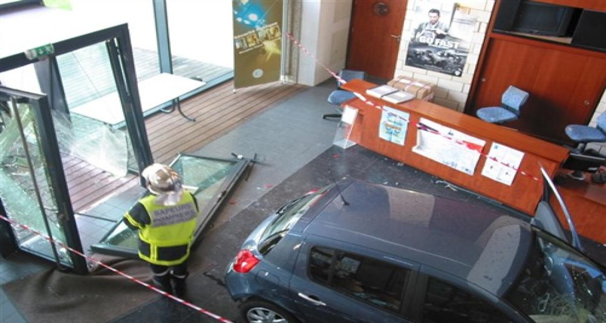 Février est froid ; Une plaque scélérate de verglas lui fit perdre le contrôle de son véhicule et le sourire : Glissade et Patatras, le voila embouti dans la vitrine d’un commissariat !