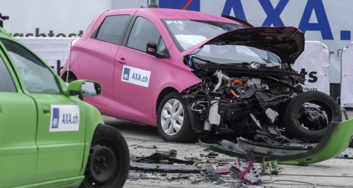 Pour illustrer son propos, Axa Suisse a mis en scène 3 crash tests. Un crash frontal entre une Renault Zoe et un break Volvo. Il illustrerait un véhicule électrique qui sort d’un virage, à 70 km/h. « La voiture électrique accélère plus rapidement que prévu, ce qui surprend le conducteur, qui dévie de sa trajectoire et se retrouve sur la voie opposée ». Franchement, si une Zoe accélère aussi fort à en faire perdre le contrôle à son conducteur, il faut de suite interdire les véhicules de plus de 80 chevaux !