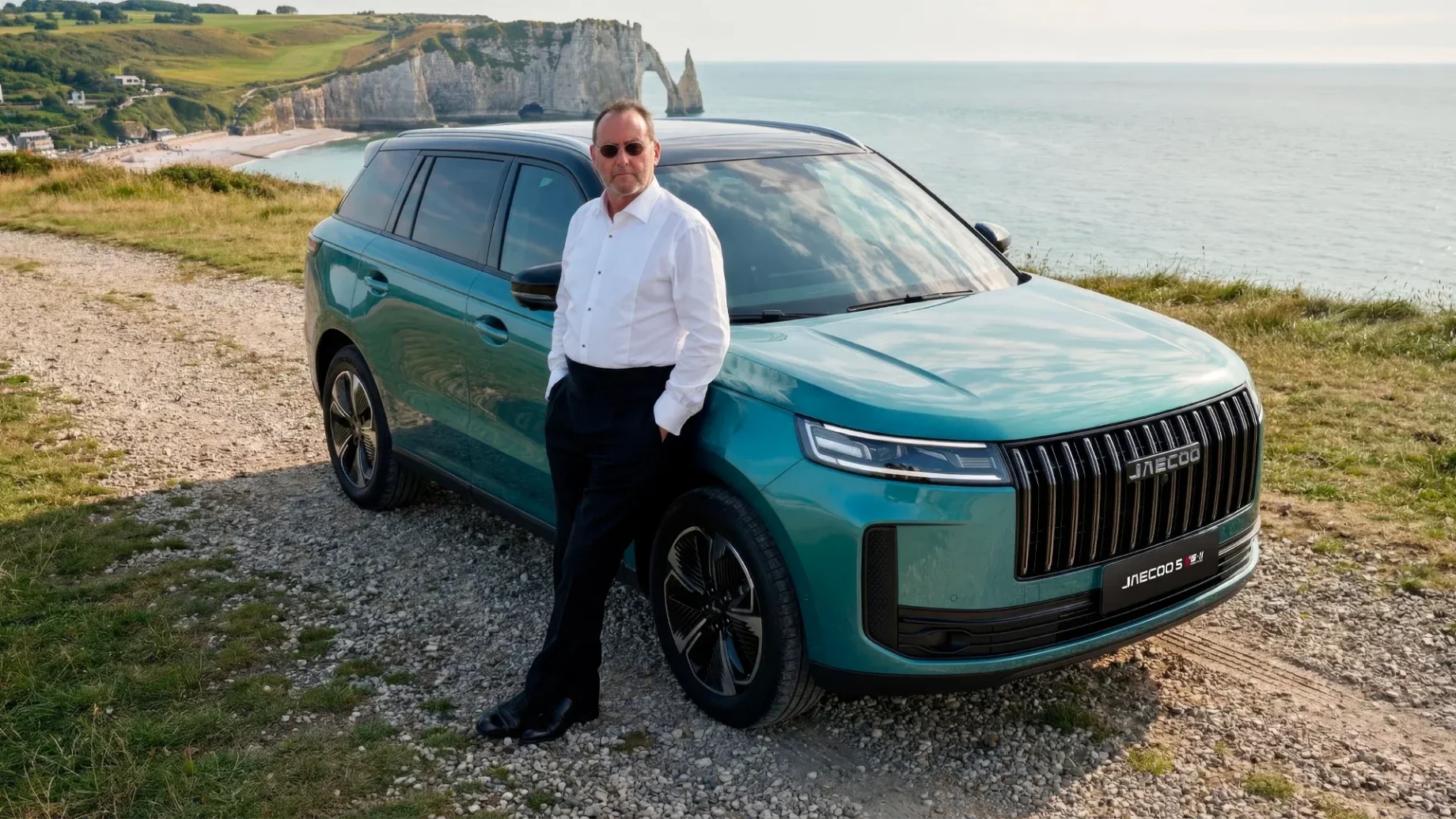 Le film met en scène Jean Reno quittant un hôtel parisien sous la pression de paparazzis avant de prendre la route en direction de la Normandie au volant du JAECOO 5.