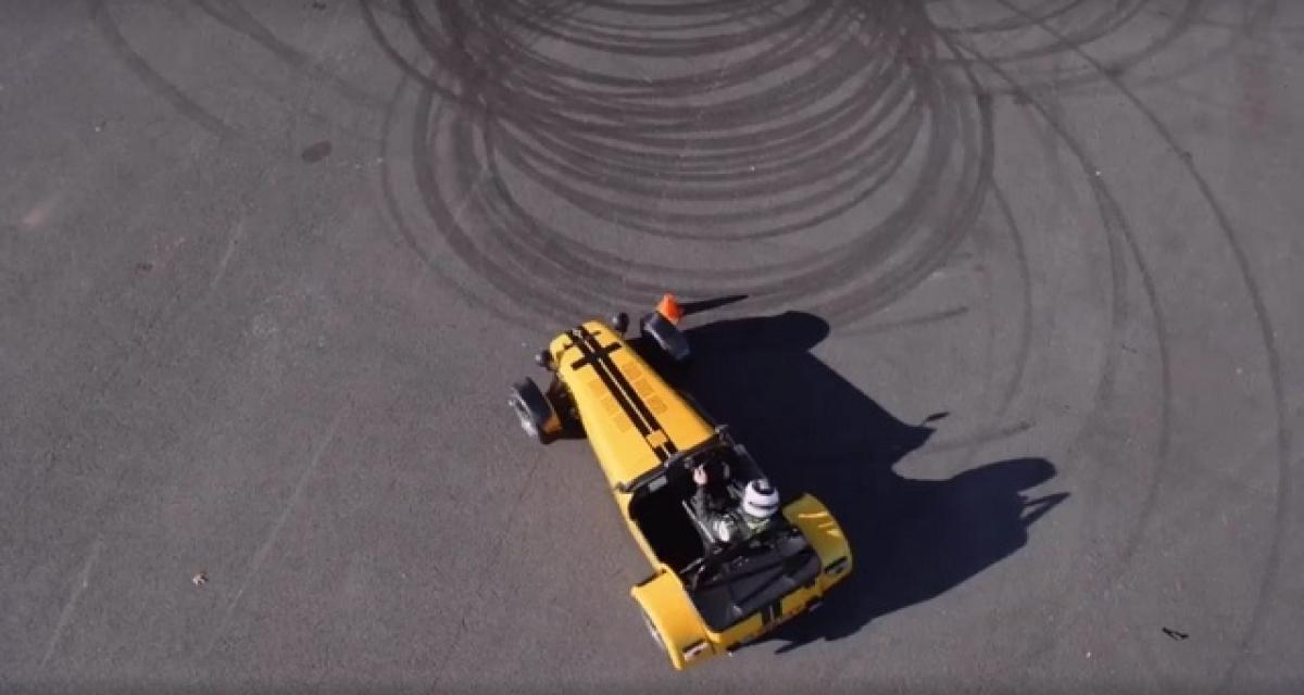 Lors du temps imparti de 60 secondes, Sir Chris Hoy et la Seven 620R parviennent à boucler ensemble pas moins de 19 donuts. La vidéo s’apprécie sans autre commentaire.