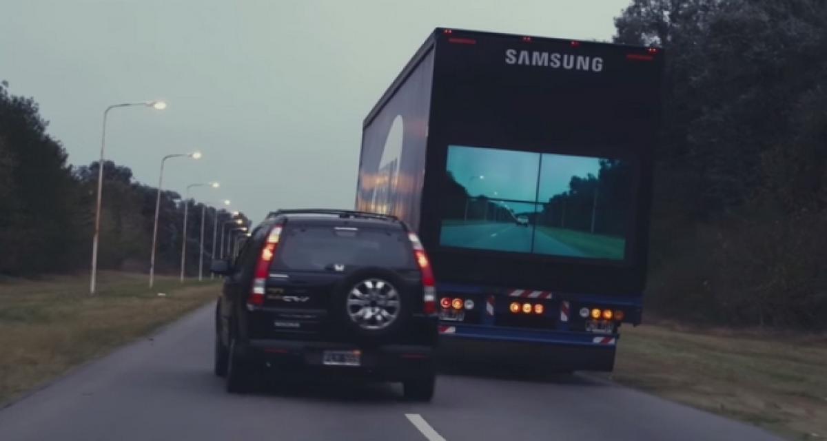 Le dispositif donne la possibilité au conducteur d’un véhicule qui suit un semi-remorque de voir devant lui grâce à un écran situé sur la remorque. L’image est renvoyée grâce à une caméra sans-fil positionnée dans le pare-chocs avant du tracteur.