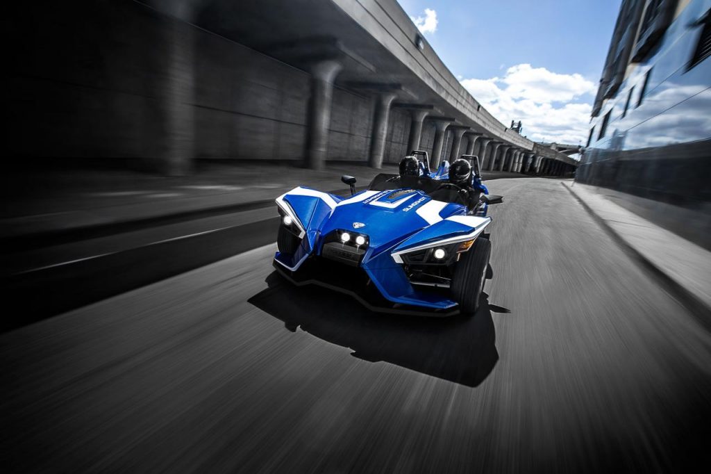Se positionnant entre moto et auto, auto et moto, revoici la Slingshot de Polaris. Ici dans une série limitée.La marque dévoile donc la nouvelle Polaris Slingshot Blue Fire SL LE, une série limitée disponible à la commande chez les revendeurs et dont on ne connait pas encore le nombre d’exemplaires appelés à prendre la route (la marque américaine annonce une quantité limitée) mais qui s’affiche au ticket d’entrée de 26 999 dollars sur le marché américain.
