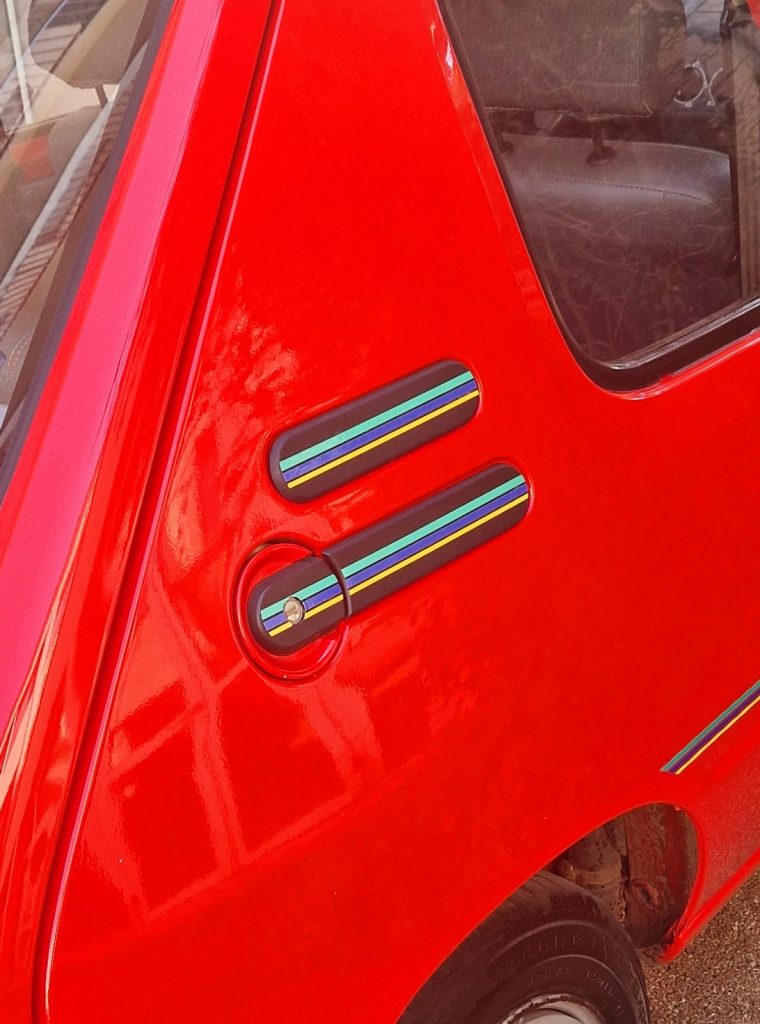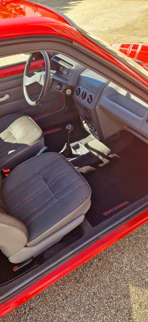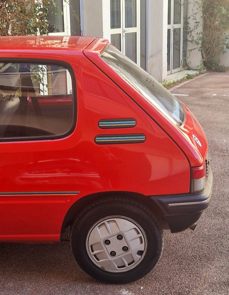 Petit rappel historique : Dans la foulée du hit commercial que fut la 205 dès son lancement, porté aussi par les succès en Groupe B puis la folie suscitée par la GTi, la 205 Junior est introduite en 1986 en tant que série spéciale, avant d’être intégrée à la gamme en 1987. C’est d’ailleurs à ce moment-là que le rouge fait son apparition. L’idée était de capter une clientèle jeune qui ne pouvait pas forcément s’offrir les versions sportives de la 205 et encore moins la GTi. Le choix fut donc bien calculé, en proposant un équipement très minimaliste afin de limiter le prix, mais avec une présentation attrayante grâce à des coloris et des liserés décoratifs sympas, une sellerie en jean très “mode” et surtout l’équipement nécessaire pour brancher un autoradio, et oui, l’accessoire indispensable du jeune des années 80, l’équivalent du smartphone actuel !