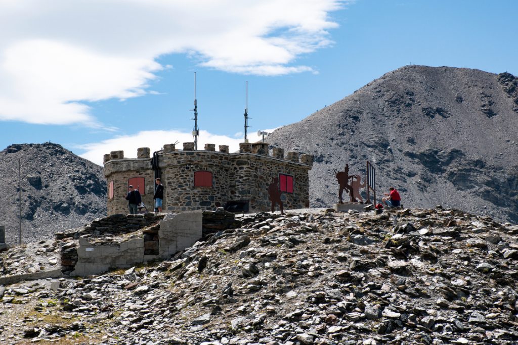 205 Junior a terminé son ascension avec honneur, vers midi. Un horaire idéal pour ensuite profiter de l’après-midi au Stelvio, prendre le téléphérique jusqu’à 3174 mètres, au pied des pistes de ski en service, puis monter au fort Garibaldi de l’autre côté du col. Un lieu chargé d’histoire, puisque le Stelvio fut le théâtre d’intenses affrontements durant la Grande Guerre. Une randonnée permet de marcher sur les pas des vétérans de 14-18, avec de nombreux panneaux pédagogiques et des vestiges. On apprend ainsi avec stupéfaction que des canons furent hissés sur le Mont Ortler, le géant qui domine la région, à plus de 3900 mètres d’altitude !