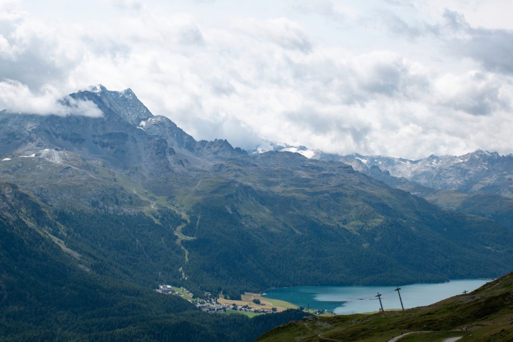 De là, on peut prendre un téléphérique jusqu’au Piz Nair, mais la route nous attendait : à la sortie de Saint-Moritz, nous prenons le Julier pass (assez sauvage et désert) pour redescendre en direction du village de Trun, et son petit “Campadi”. Et oui, nous entrons dans la région où l’on parle le Romanche, langue rhéto-latine parlée par quelques dizaines de milliers de Suisse. Le camping devient un “Campadi”, et l’on ne dit plus “buongiorno” ni “guten tag” mais “Bun di”. Le vocable, sur les panneaux, change aussi !