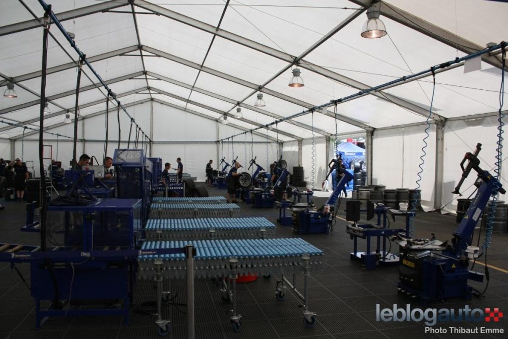Pour monter tous ces pneus, Michelin fait appel à une société spécialisée dans le montage. Plus de 35 techniciens se relaient pour monter, gonfler à l’air sec et équilibrer les roues pour les écuries. C’est sans doute la partie la plus proche de nos pneus de série.