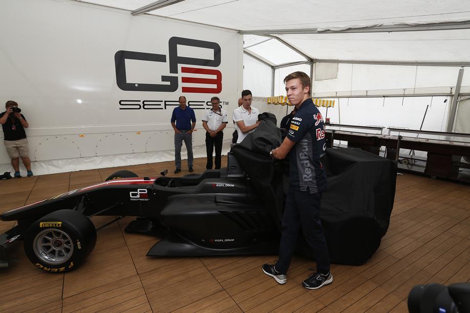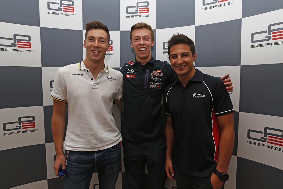Mitch Evans, Daniil Kvyat et Alex Lynn (tous trois anciens champions de GP3) posent avec la nouvelle voiture.