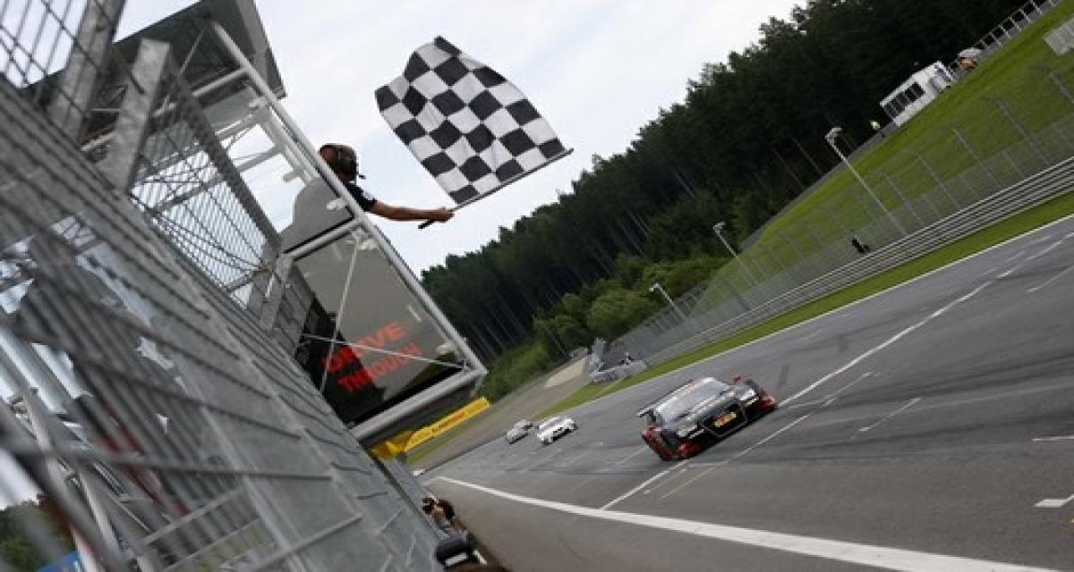 Mattias Ekström termine 4ème devant Jamie Green (Mercedes), Timo Scheider (Audi), Mike Rockenfeller (Audi), Filipe Albuquerque (Audi), Joey Hand (BMW) et Augusto Farfus (BMW). Edoardo Mortara signe ici son premier succès et offre également la première victoire du Team Rosberg.