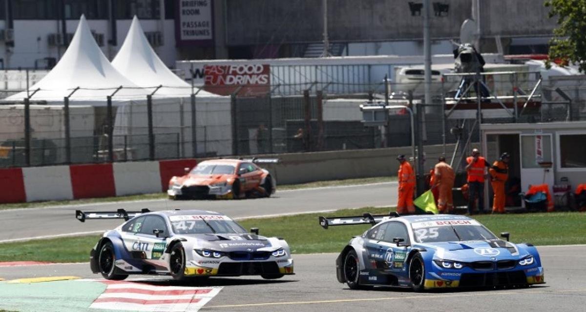Au départ, Bruno Spengler (BMW) s’envole à la perfection et prend la tête devant Wittmann et Rast. Les positions n’évoluent guère, tandis que plusieurs pilotes de milieu de peloton, parmi lesquels Philipp Eng, Nico Müller et Loïc Duval, passent aux stands au 13e tour. Bien leur en a pris puisqu’au tour suivant, deux Aston Martin s’immobilisent: Daniel Juncadella est arrêté au bord de la piste mais Jake Dennis est immobilisé dans la bretelle de sortie des stands, voiture fumante ! La direction de course déclenche une safety-car, qui piège donc les leaders ne s’étant pas encore arrêtés.