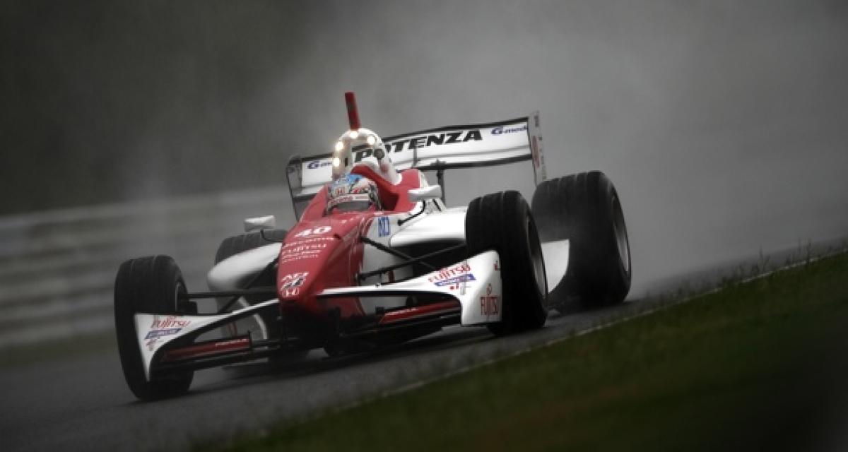 La pluie noyait le circuit alors que l’heure du départ approchait, avec les habituelles et dangereuses “rivières » de Sugo coupant la ligne droite de la forêt, au point que le départ sous safety car était décidé. Les monoplaces parcouraient quatre tours derrière la GT-R à rampe de gyrophares avant d’être livrées à elles-mêmes. Immédiatement Izawa et Tsukakoshi s’échappaient, lâchant progressivement Matsuda et Nakajima. La pluie faisait au fil des tours quelques victimes dans le fond du peloton et c’est Loïc Duval qui faisait le show, passant Oshima pour le gain de la sixième position par l’extérieur du virage 2 avant de remonter vers la tête de la course. André Lotterer coincé derrière des voitures moins rapides que lui faisait le choix de s’arrêter très tôt pour le ravitaillement en carburant afin de se décaler. Il ne changeait pas de pneus, un choix qui allait être suivi par l’ensemble du peloton.