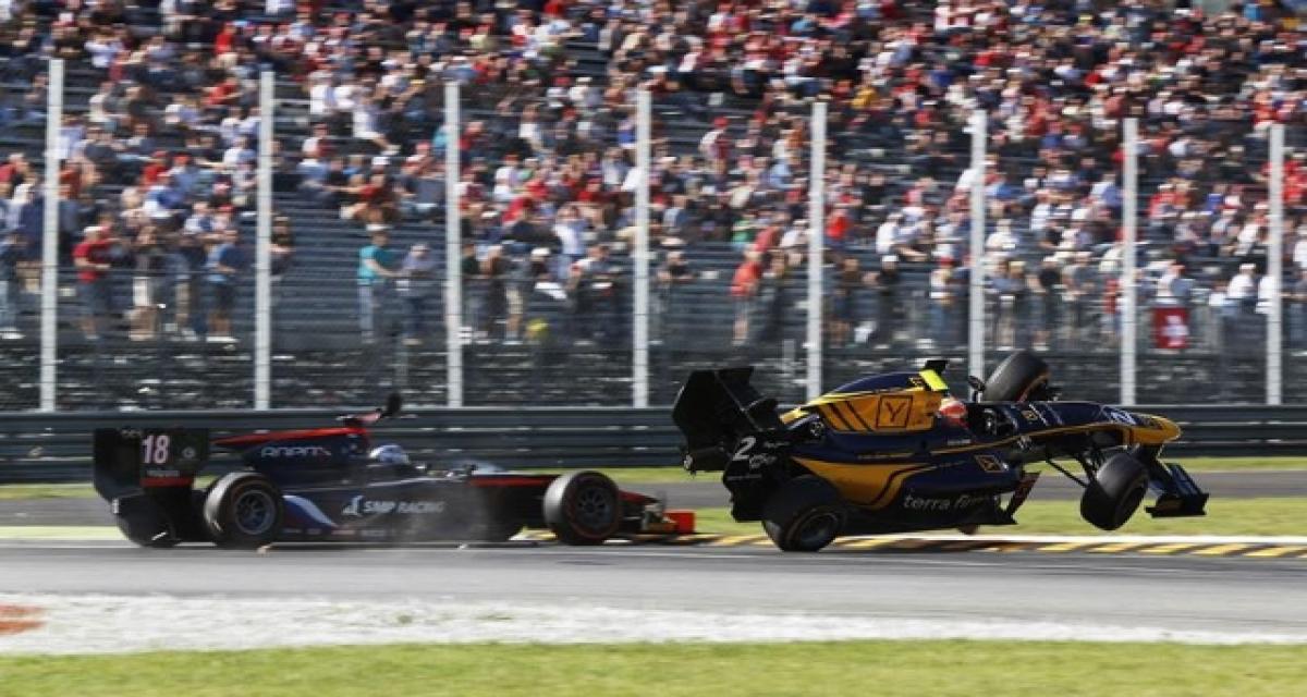 C’est du moins ce que le départ laissait entrevoir. En effet, tous deux ont parfaitement jailli de la grille pour se diriger en tête au premier virage du tracé italien. Norman Nato se positionnait derrière son compatriote, mais c’était sans compter sur la manœuvre dénuée de sens de l’Anglais et ancien vainqueur de la Formule 3 britannique, Jordan King. Ce dernier a voulu se racheter de son mauvais départ – d’autant plus qu’il s’élançait depuis la première place sur la grille – mais ne s’y est pas pris, et c’est le moins que l’on puisse dire, de la bonne manière. En voulant absolument reprendre, et ce, le plus vite possible, une des positions perdues suite à son piètre envol, il a percuté Norman Nato, et l’a contraint à l’abandon.