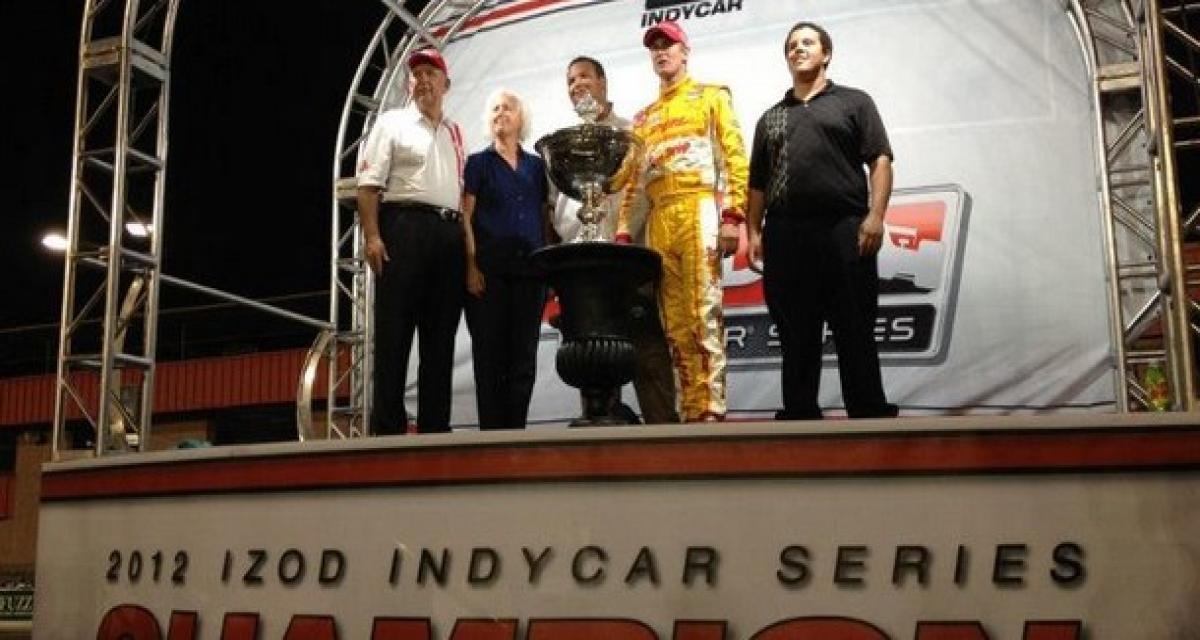 Franchitti est deuxième, devant son équipier Scott Dixon. Simon Pagenaud (Sam Schmidt), déjà sacré meilleur débutant, est 15e.