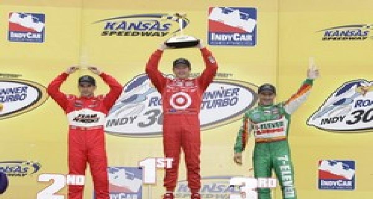 Première manche 2009 sur ovale pour l’Indycar, après deux courses en ville. Dans le Kansas, Scott Dixon (Ganassi), champion 2008, s’est rappelé aux souvenirs de tous. Mais le héros du jour fut incontestablement le 2e, Helio Castroneves (Penske.) Tandis qu’au championnat, le 3e, Tony Kanaan (Andretti-Green), fait la bonne opération et prend le commandement.