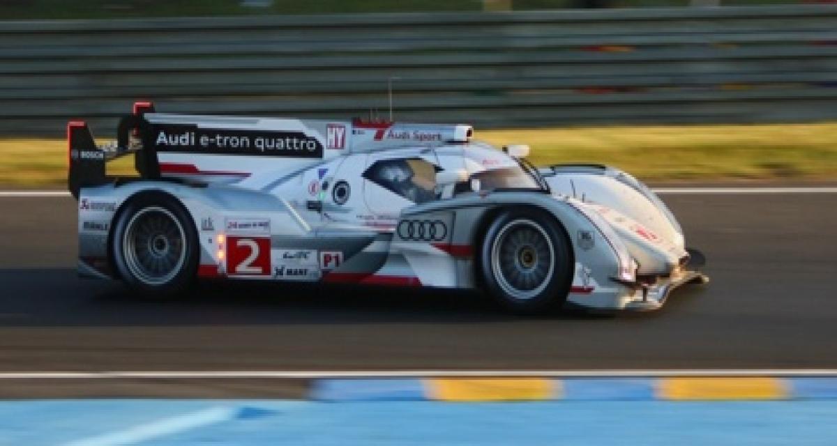 Le problème est survenu lorsque la Corvette no74, bloquée en piste, a obligé Marcel Fässler à un tout droit où le pilote Audi a tapé la barrière de pneus de l’arrière. Fässler a du repasser à son stand pour changer le capot et l’aileron, ce qui a permis à Tom Kristensen de passer. Les deux autos roulent maintenant ensemble, la no1 à quelques secondes de la no2 et aucune consigne n’a été donnée, le duel va être passionnant. Les Audi sont maintenant aux quatre premières positions, la no3 avec Loïc Duval au volant ayant passé la Lola-Toyota no12 et alignant les meilleurs tours en course à défaut de pouvoir revenir sur la tête de la course. A 9 tours, il est trop loin.