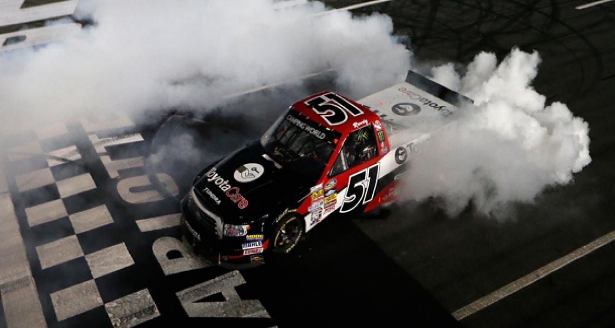 Malgré une pénalité après un pit stop raté l’ayant renvoyé en fin de peloton, Busch a su ramener le truck dont il est propriétaire aux avant-postes et signer sa 31ème victoire en 107 départs dans cette catégorie.