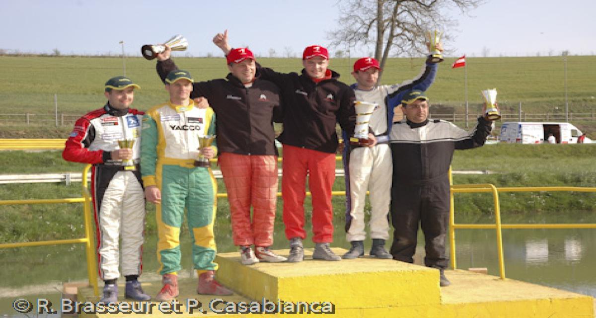 En D1A : une saison tout aussi intéressante que les précédentes se prépare avec la venue du jeune Steven Bossard (Citroën C2 Super 1600). Il se montre d’emblée performant et prêt à animer les débats en attendant le retour de son père en course. « Je construis une Citroën C2 identique à celle que j’ai passé à mon fils pour courir avec lui » nous déclare Olivier Bossard. Du nouveau aussi avec David Olivier vainqueur de la Coupe Logan 2009 et qui bénéficie de la Dacia Super 1600 pour 2010. Adeline Sangnier a fait un très bon Week-end avec une finale B d’anthologie ou elle remonte de la 3ème à la 1ère place et se hisse donc en finale A, chapeau ! Patrick Jarret (Peugeot 206 Super 1600) en tête de sa série n’a pas eu de chance, il a tiré tout droit dans le rail au bout de la ligne droite en terre à 130 Km/h les freins ayant lâché. Il s’en tire avec une côte fêlée, une carrosserie à refaire des deux côtés et quelques semaines d’absence des circuits.