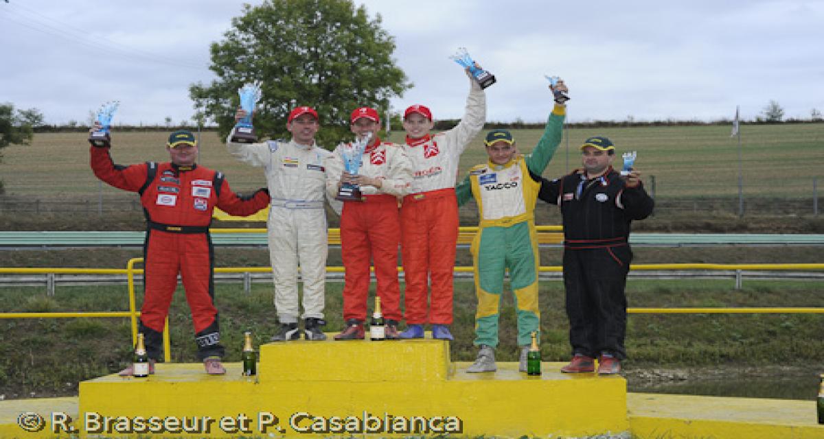 Samuel Peu (Citroën Saxo Kit Car), David Deslandes (Citroën Saxo Super 1600) et Samuel Peu à nouveau voici le résultat des 3 manches qualificatives qui montrent bien que Samuel champion 2009, a démontré que cela n’était pas dû au hasard. Il empoche la 7ème victoire de la saison. David termine second devant le jeune et étonnant Steven Bossard (Citroën C2 Super 1600). L’autre jeune talent Roman Ferrero (Dacia Logan D1A) voit son week-end ruiné par un incident de course lors de la 2ème manche qualificative. Dominique Le Noac’h (Citroën Saxo Super 1600) avait un peu « ouvert la porte » à la relance après le virage parabolique, Roman s’est engouffré dans le trou, en se resserrant très rapidement Dominique a envoyé Roman heurter violemment le talus, la voiture s’est soulevée, a effectué un 180°. Roman bien secoué a eu du mal à sortir de la voiture. Ce type de fait de course est arrivé à plus d’un avant lui, c’est dur à encaisser dans tous les sens du terme. Roman ne marque aucun point à Essay mais il reste au cumul à la 5ème place du championnat.