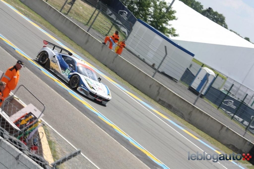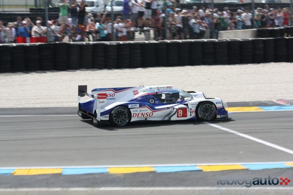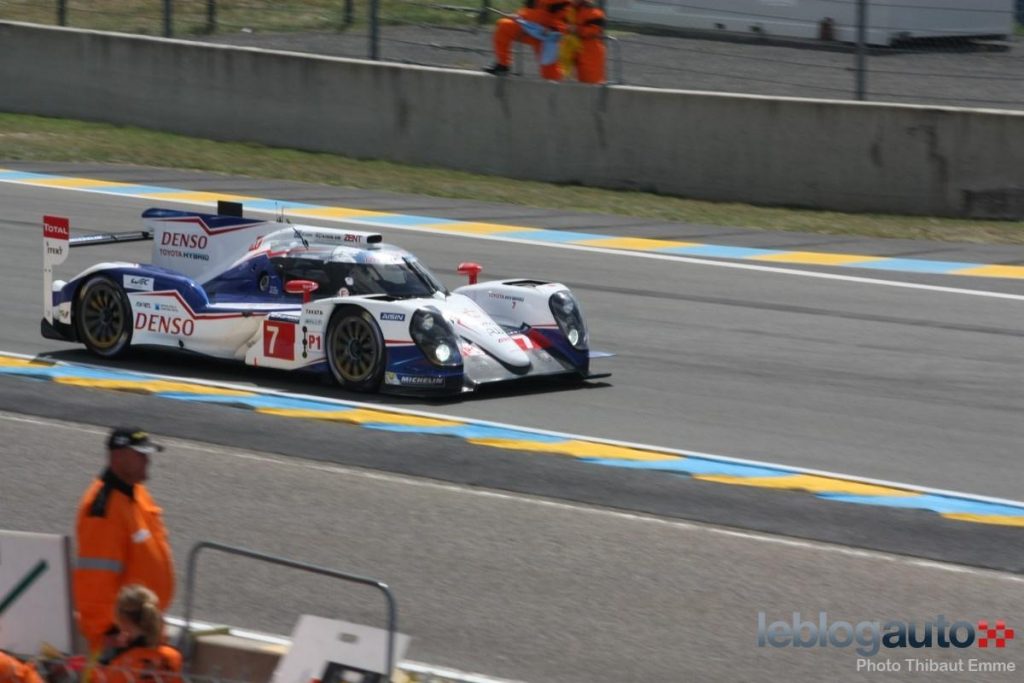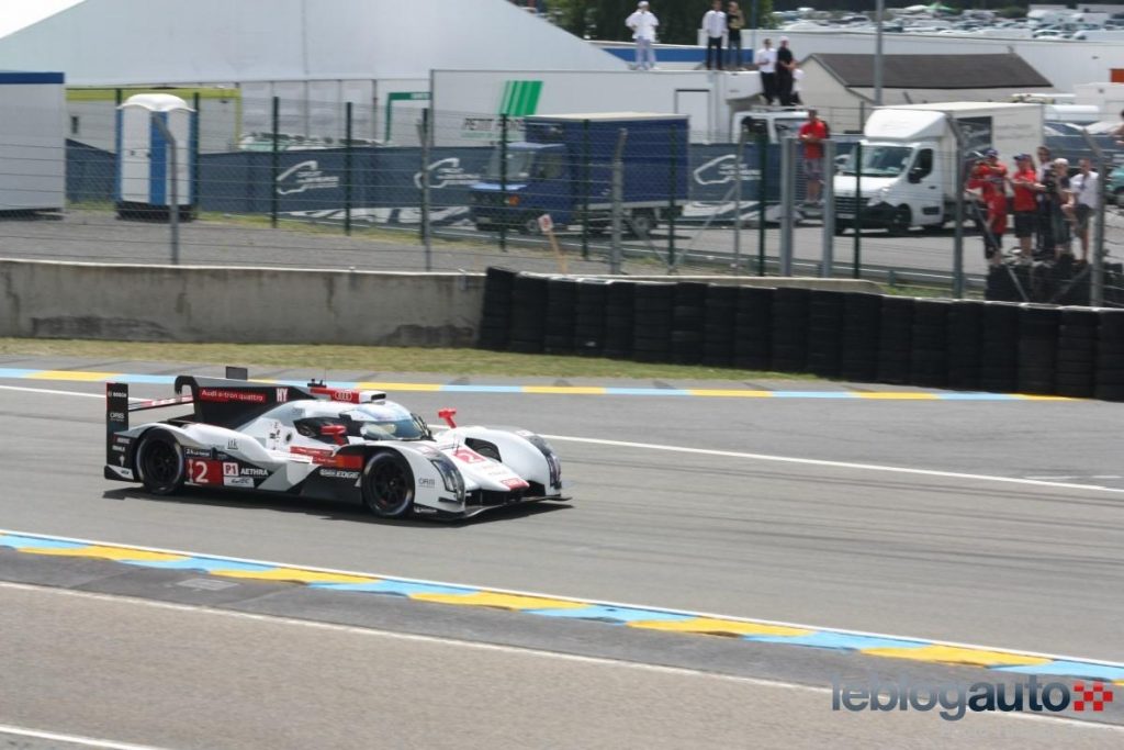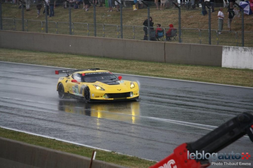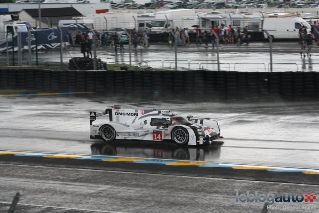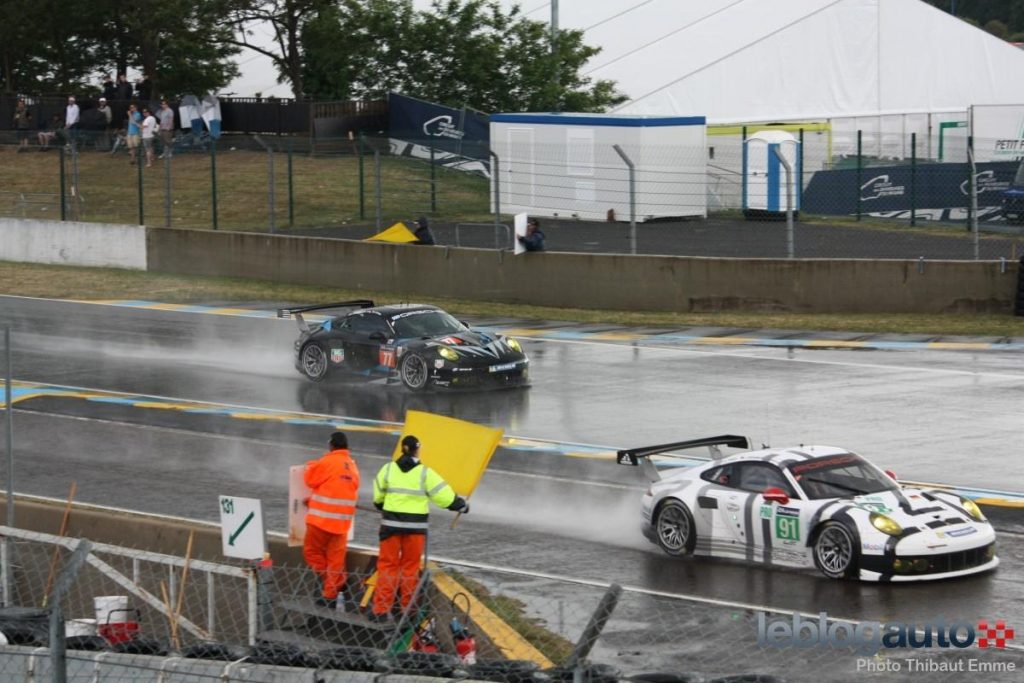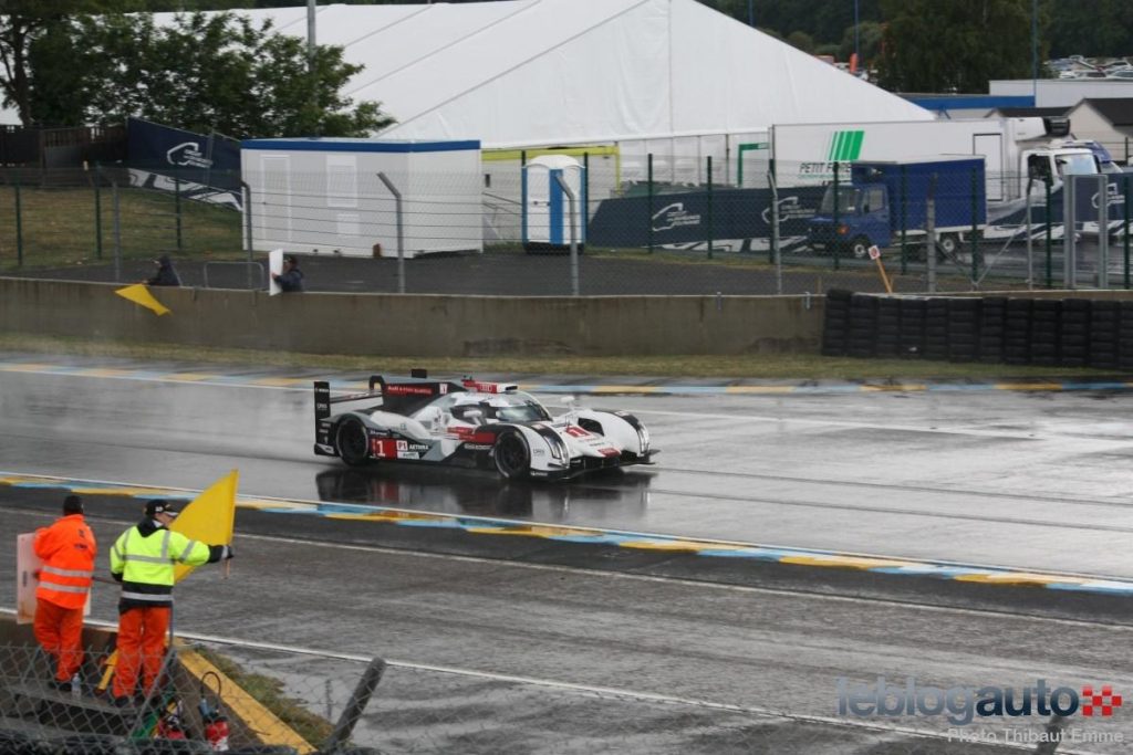 Alors que le début de la course s’était déroulé sous le soleil, une averse très violente s’abattait sur les Hunaudières une heure et demi après le début de l’épreuve, transformant la route en patinoire. Nicolas Lapierre en perdition écrasait la Toyota #8 dans l’arrière de l’Audi #3 de Marco Bonanomi, un gros carton impliquant également la Ferrari #81 alors leader de la catégorie GTE am. Dans le même temps, l’Oreca #47 KCMG passait à travers une barrière de pneus. Les dégats déclenchaient l’arrivée en piste du Safety Car. La Toyota blessée pouvait repartir pour une grosse séance de mécanique alors que c’était l’abandon pour l’Audi #3.