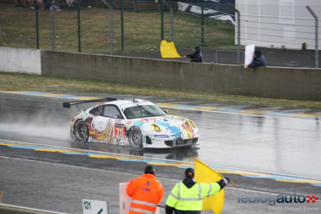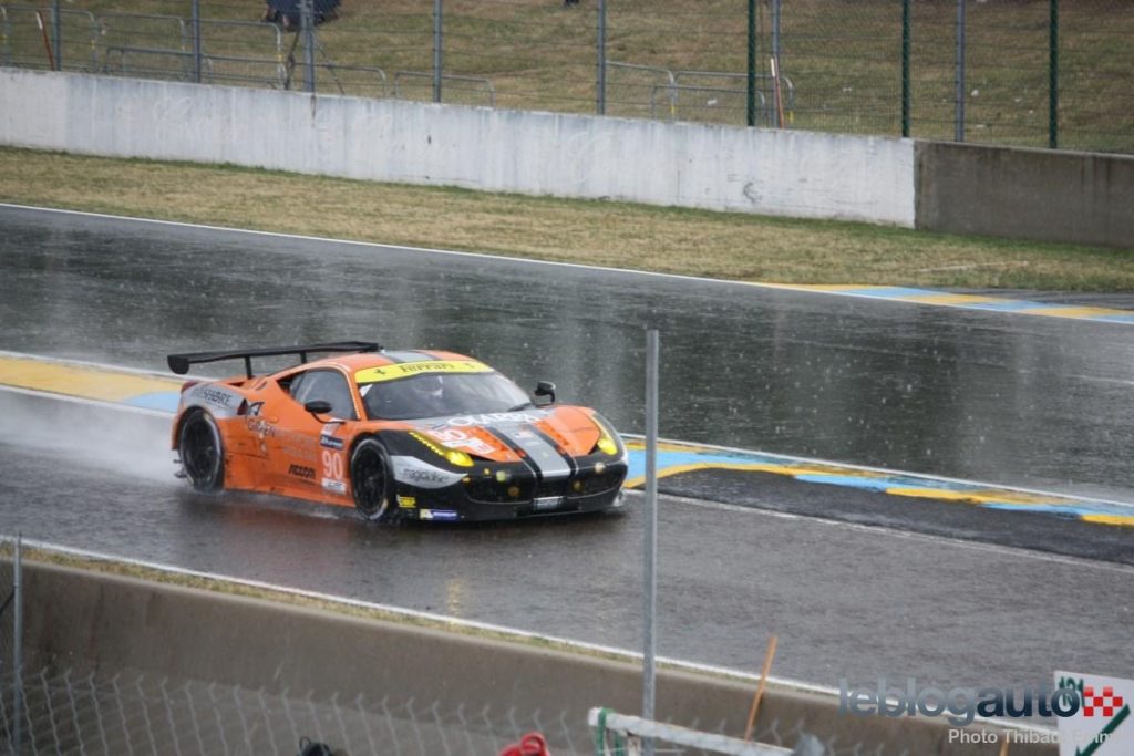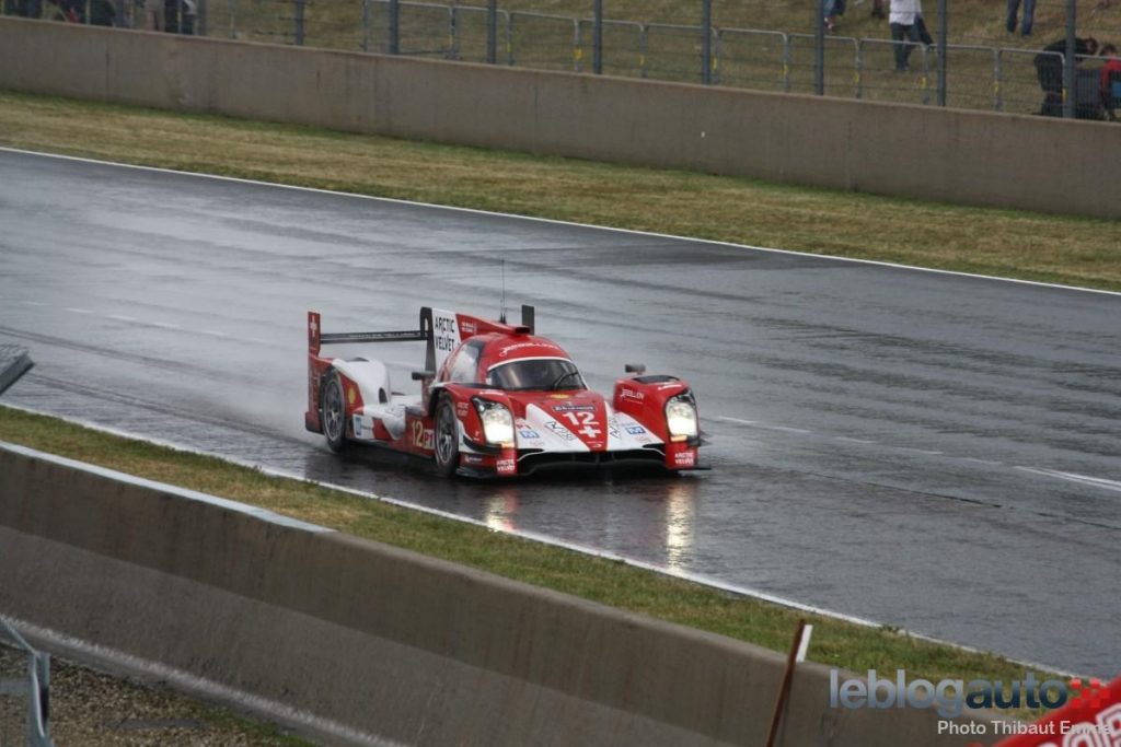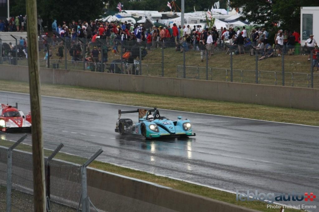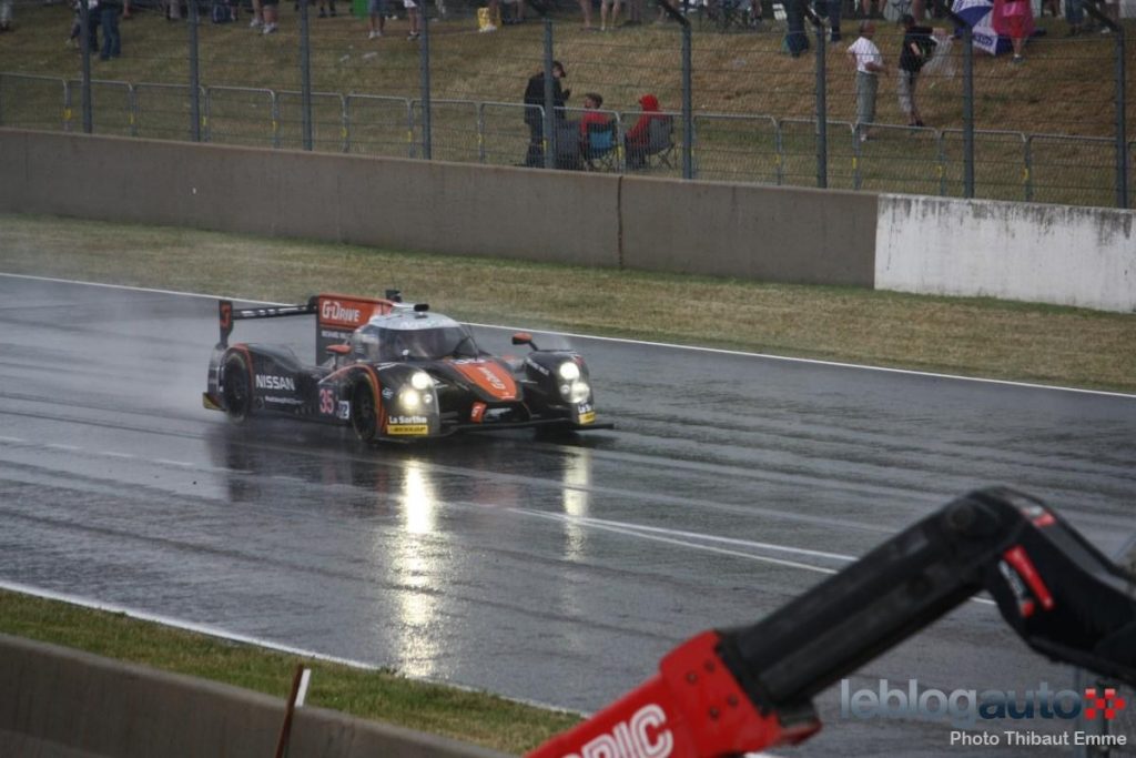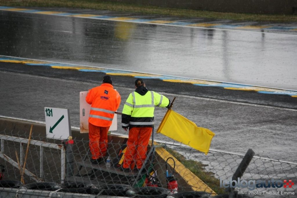 Le safety car lâchait les voitures une trentaine de minute plus tard, avant de revenir en piste au bout d’un quart d’heure pour cause d’une autre énorme averse qui faisait cette fois deux victimes parmi les LMP2, les Zytek #41 et #48 elles aussi bien endommagées.
