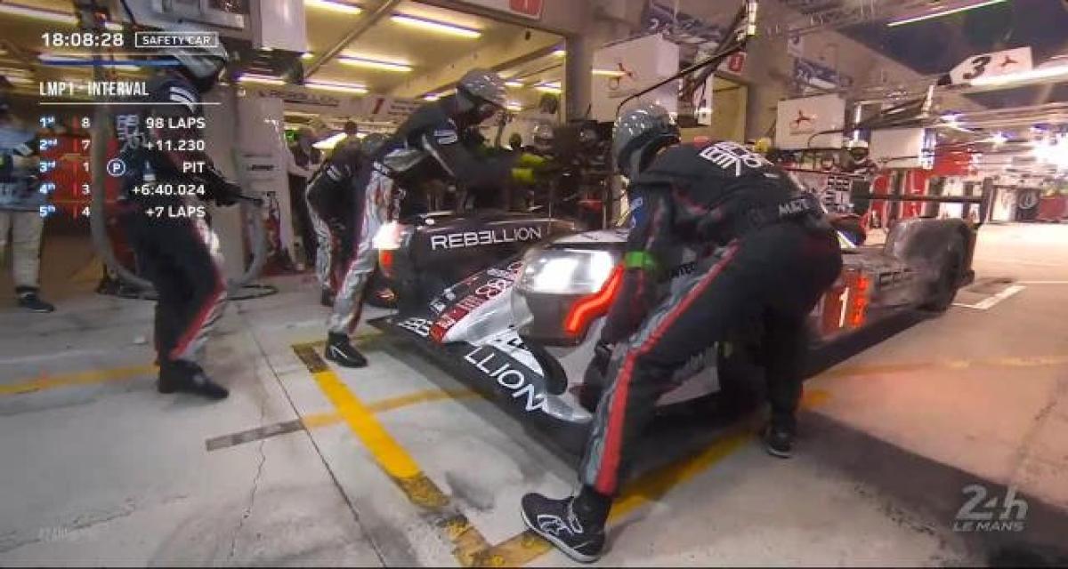 La Toyota #8 connait un arrêt prolongé. Un débris était visiblement coincé à l’avant droite. Nakajima repart (il prend le relais d’Hartley) et a concédé une poignée de seconde à la #7 qui reprend la tête. La #55 rentre enfin au stand après sa crevaison. 25 minutes pour un tour !