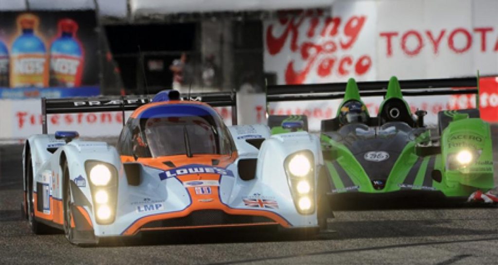 Bien que les prototypes ne forment désormais plus qu’une seule catégorie, les différences visibles depuis plusieurs saisons entre les deux types sont encore présentes. Ainsi, la Acura ARW-01C, ex P2, est très rapide en virage, mais manque de pointe de vitesse en ligne droite. Un avantage dont ne manque pas l’Aston Martin officielle (P1), qui comble son retard dans les grandes lignes droites du circuit de Long Beach, notamment la ligne droite opposée). La bataille s’annonçait belle. Dès le départ, David Brabham, pourtant parti en pôle, se retrouva très vite quatrième. Devant, l’Aston Martin de Primat / Fernandez prend l’air. Avec une piste dégagée pour les premiers tours, la bataille semble inégale. Brabham revient sur Primat (plus lent que son équipier Fernandez) et le dépasse de manière un peu serrée (les rues sont étroites). Primat part à la faute en voulant conserver sa place, et Brabham hérite d’une pénalité…